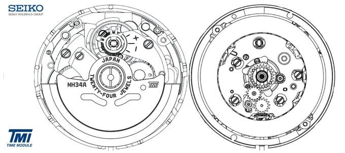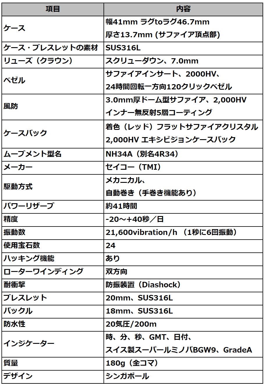GMT針を動かすためのムーブメントは、信頼のセイコー製NH34Aを使用しています。