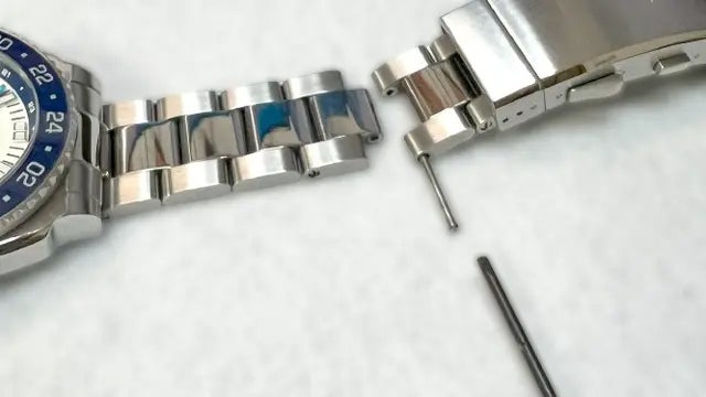 A:ベルトのコマ固定はネジ止め式ですので、1.8mm以下のマイナスドライバーで簡単に調整できます。出品者の手首は約18.5cmですが、2コマ外してピッタリぐらいでした。専用の工具は使わなくても100円ショップで売っている精密ドライバーで調整出来ました。(バックルでの微調整には専用の工具が必要です。下記のようなセットをAmazonなどで売っています)