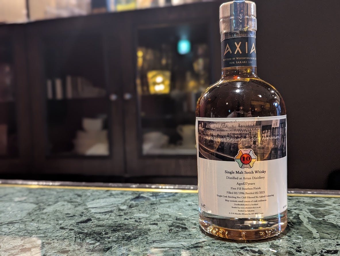 赤坂の名モルトバー、BAR Espace Rassurants様の10周年記念、アラン27年が入荷いたしました。