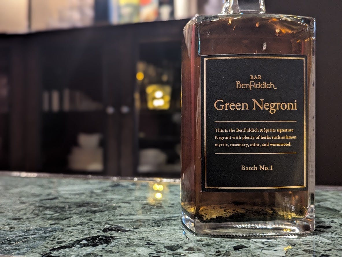 「世界最高のバー50」に毎年選出され、2022年には「アジア最高のバー50」において日本最高位の5位に輝いた、新宿の名門「BAR Ben Fiddich」監修のボトルドカクテル《グリーンネグローニ》が入荷しました。当店は基本的にモルトバーですが、ご興味のある方もいらっしゃるかと思います。1:3のソーダ割りにすると、ニガヨモギとローズマリーの清涼感が引き立ち、非常に爽やかな味わいを楽しめます。オン・ザ・ロックスまたはソーダ割りでぜひお試しください。【当店提供価格】原価クーポン使用時:10ml:200円(ブロンズクラス)オン・ザ・ロックス:2,200円1:3ソーダ割り:2,200円