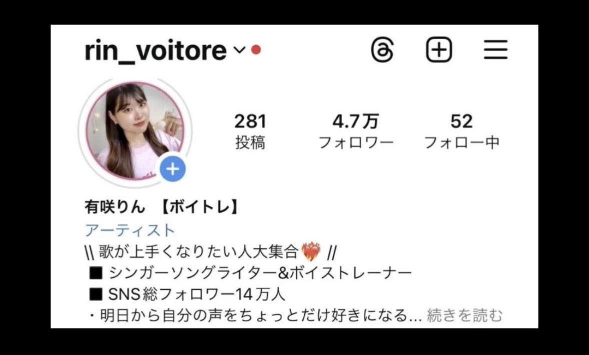 今ではSNSの総フォロワー15万人を超え、たくさんの生徒さんを指導しております。歌の楽しさをお客様に伝え、歌声を変えることができるこのお仕事が大好きです。
