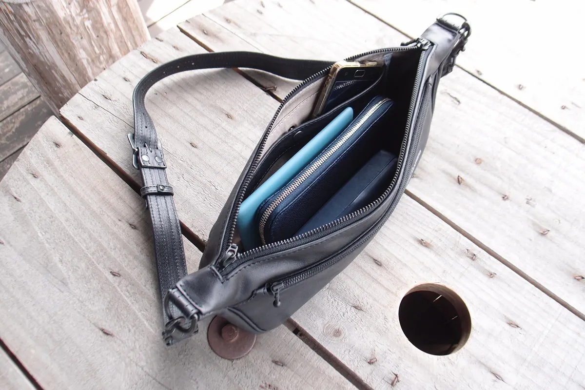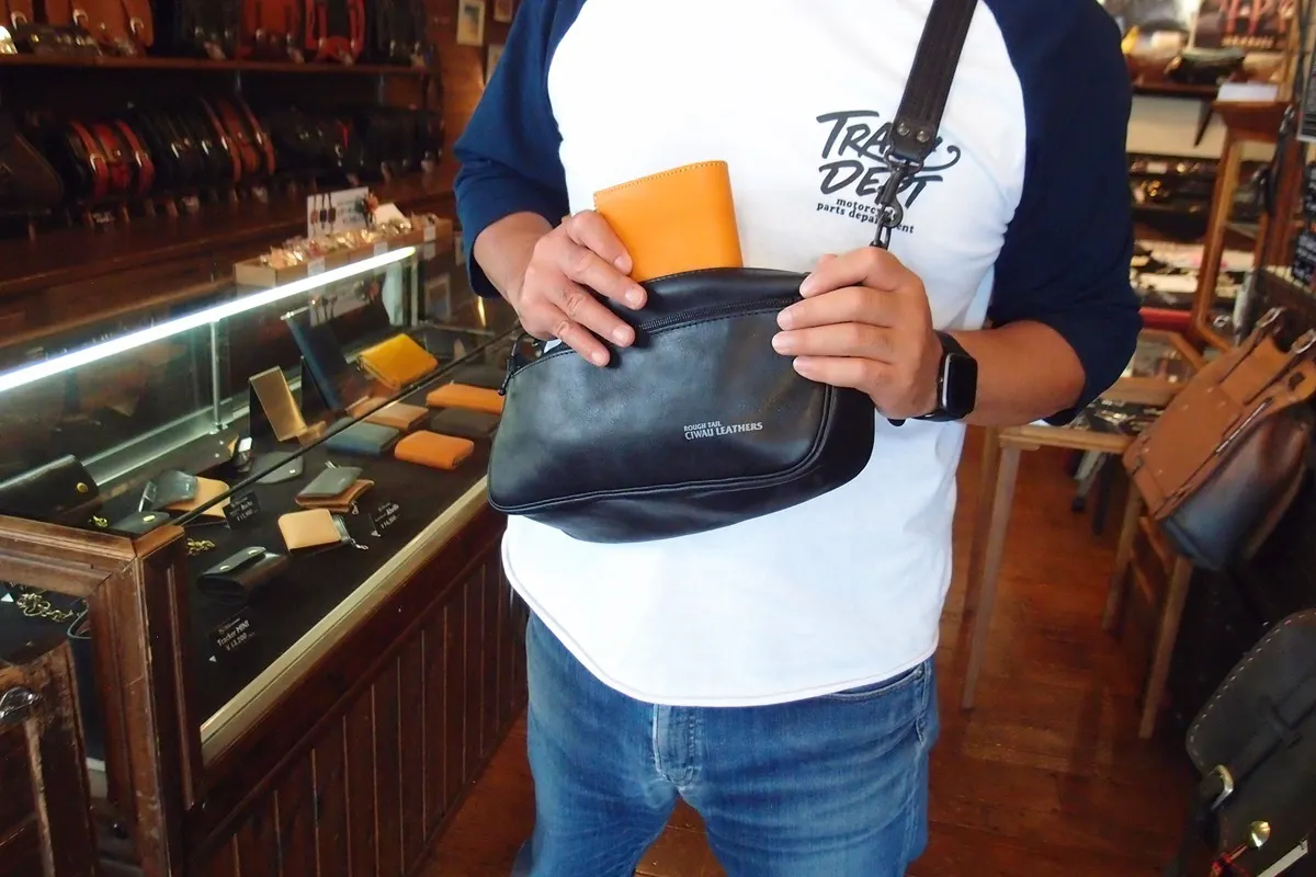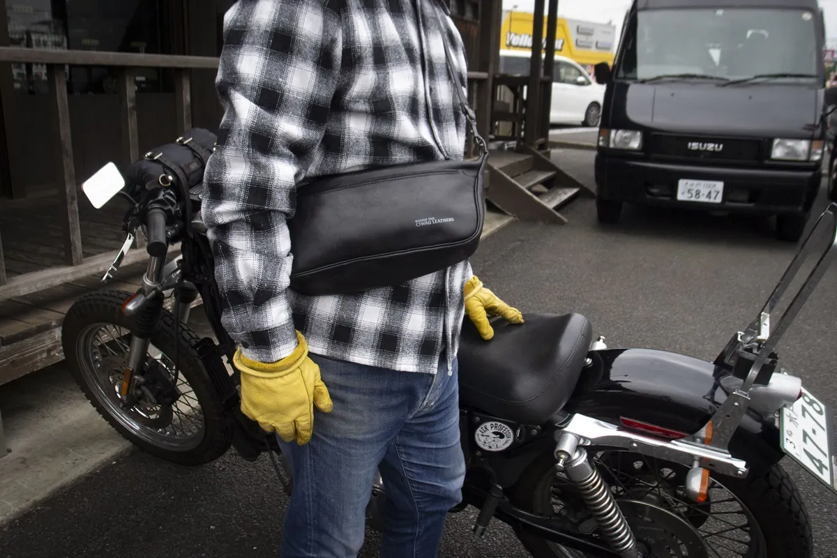このバッグは革製品に対して厳しい目を持つ二輪業界で、20年以上鍛え上げてきた製造技術と知識、情熱を駆使し自社工房で職人が作り上げた【ボディバッグ】です。