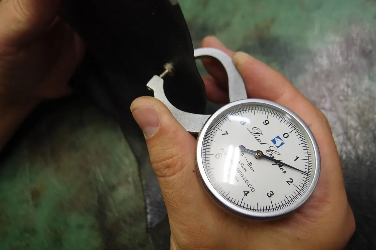 革の厚さは、約1,5mm。革の質感を楽しめる厚さです。
