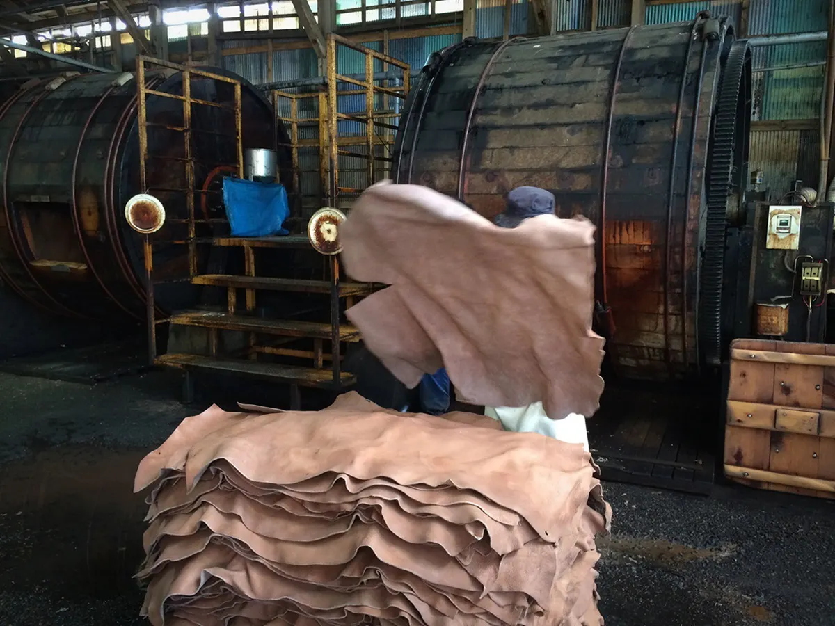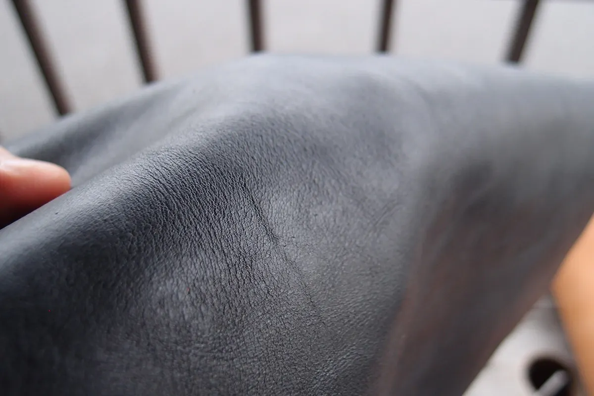 クローム鞣しの特徴である耐熱性や発色性、タンニン鞣しの特徴であるコシ感やエイジングといった双方の特徴を併せ持つレザーです。