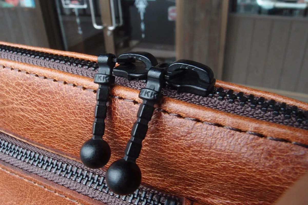 メインの開口部分は利き腕を選ばない、使いやすいダブルファスナー仕様。