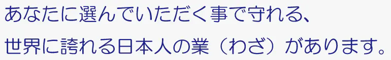 あなたに選んでいただく事で守れる、世界に誇れる日本人の業(わざ)があります。