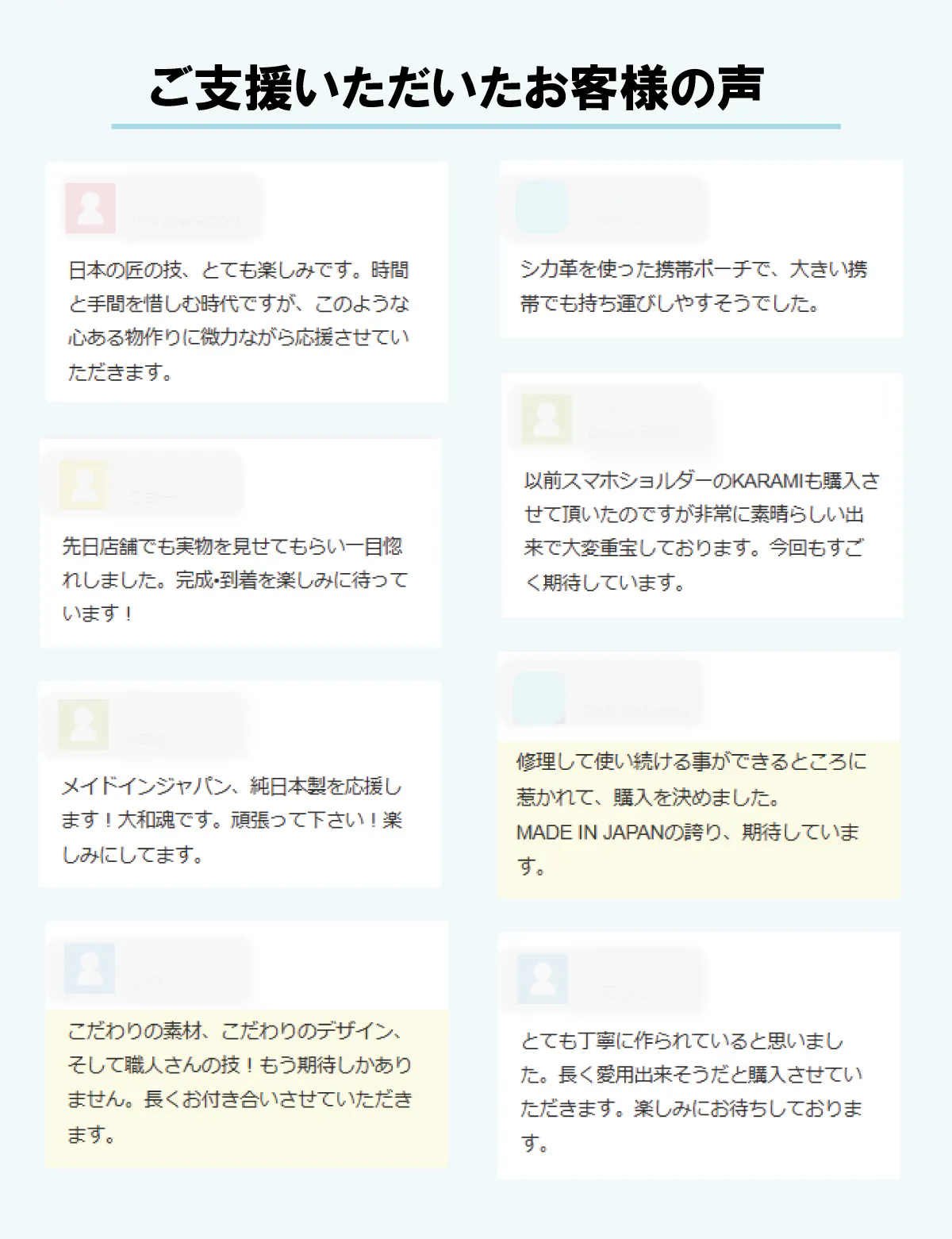 決して安価ではないにも関わらず弊社のメッセージにご賛同いただき、クラウドファンディングにてたくさんの方にご支援をいただきました。