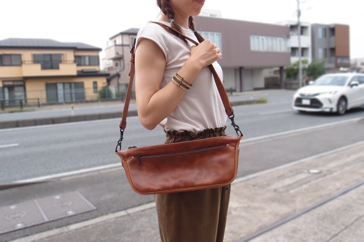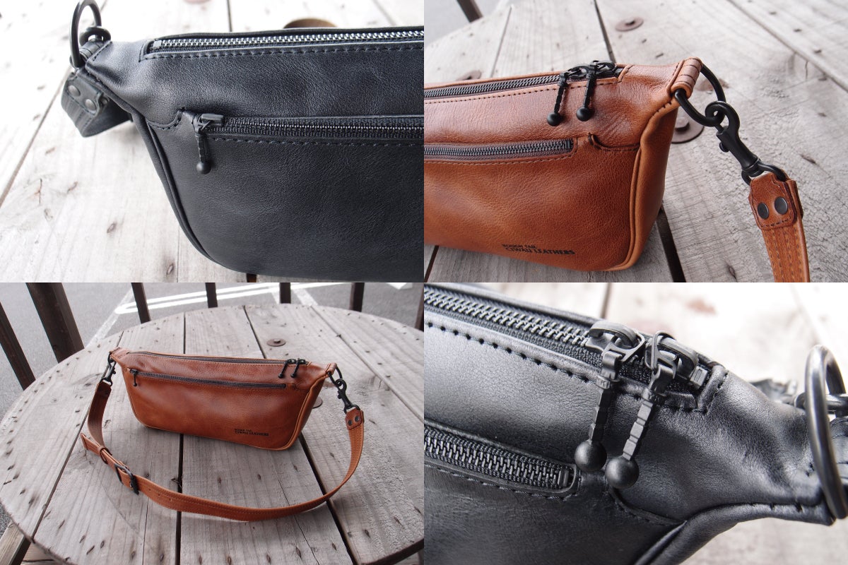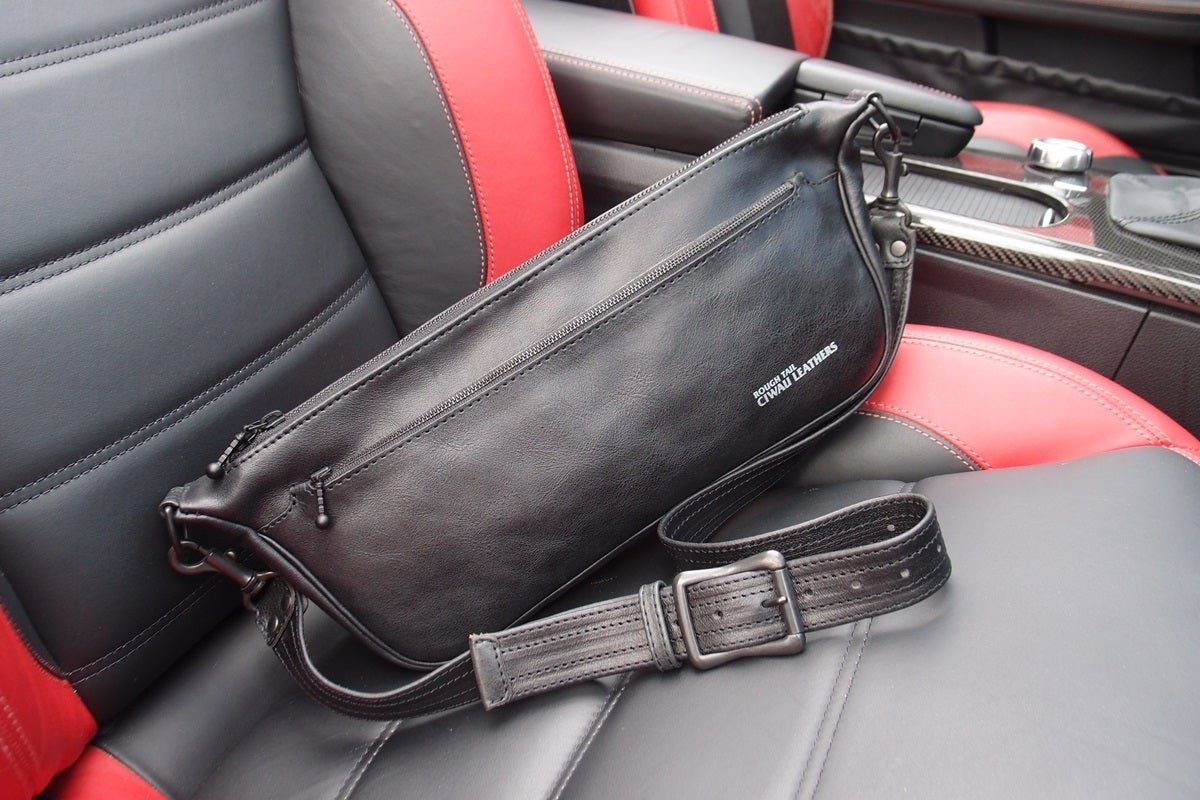 このバッグは革製品に対して厳しい目を持つ二輪業界で、20年以上鍛え上げてきた製造技術と知識、情熱を駆使し自社工房で職人が作り上げた【ボディバッグ】です。