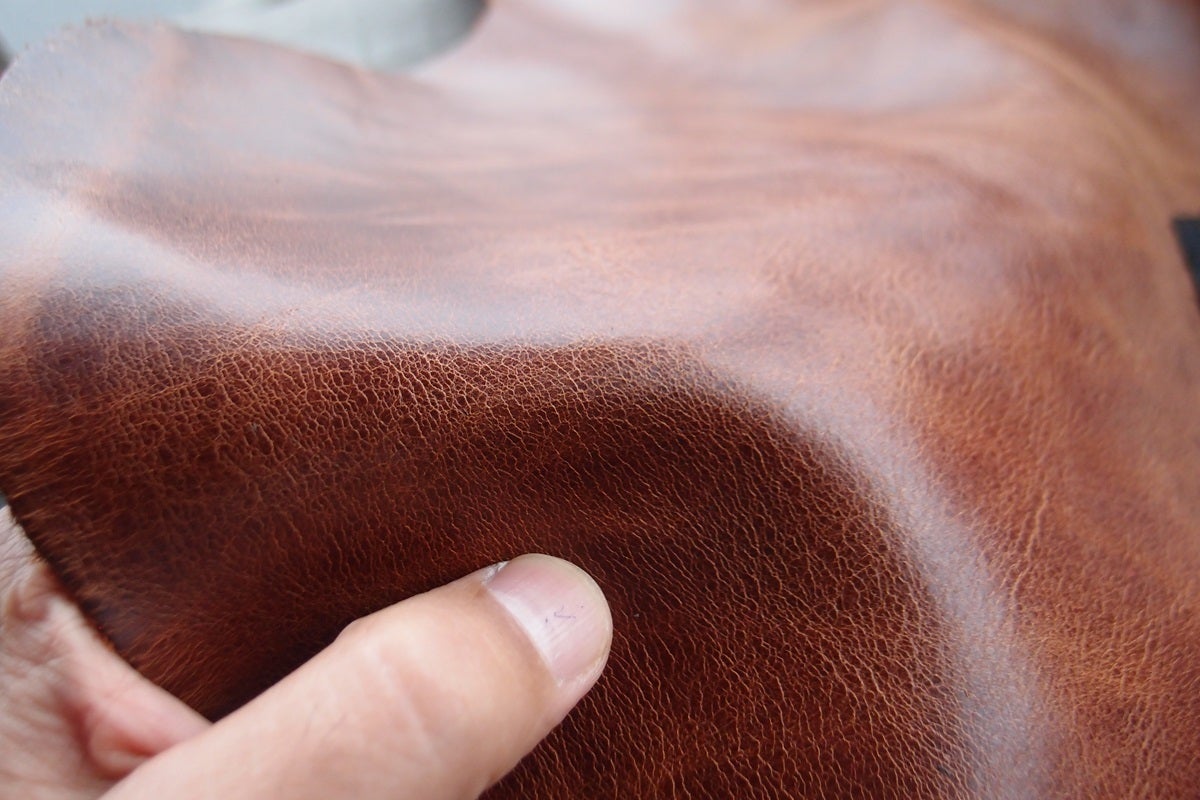 国内産牛革【ジェフウォール】・・目をひく独特のムラ感は、角度によって表情が変わります。使うほどに経年変化が進み、貴方だけの一点物に。