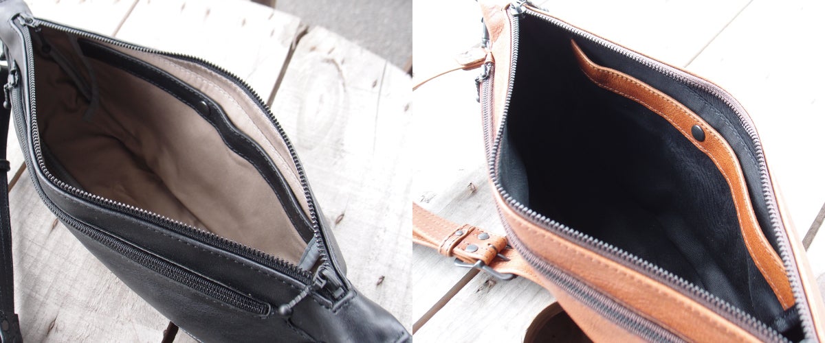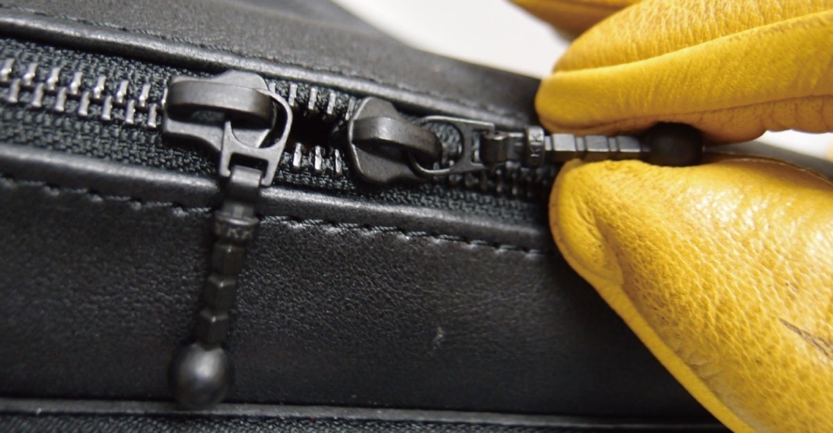 メインの開口部分は利き腕を選ばない、使いやすいダブルファスナー仕様。