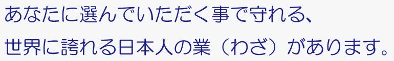 あなたに選んでいただく事で守れる、世界に誇れる日本人の業(わざ)があります。