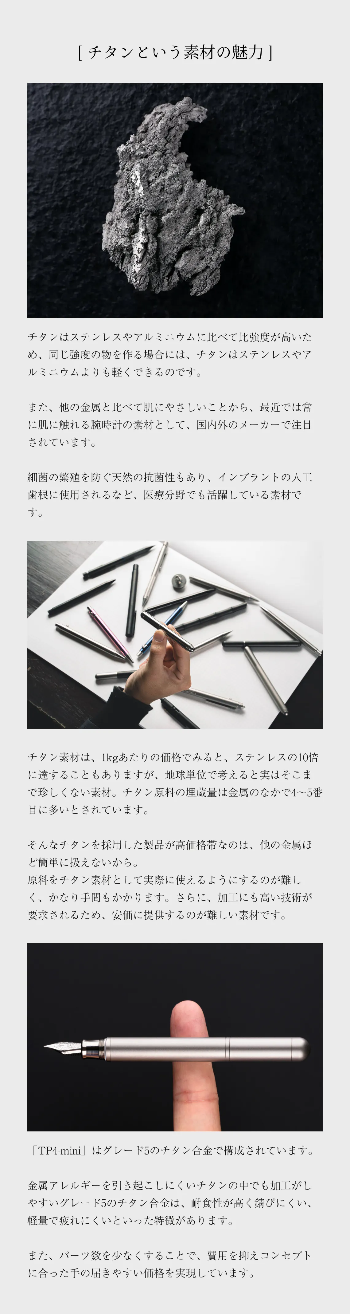 香港のデザインチームTimaze(タイメイズ)から登場した、究極にシンプルな万年筆「TP4-mini」は、耐久性が高く金属アレルギーの起こりづらい航空機グレードのチタンを採用。
