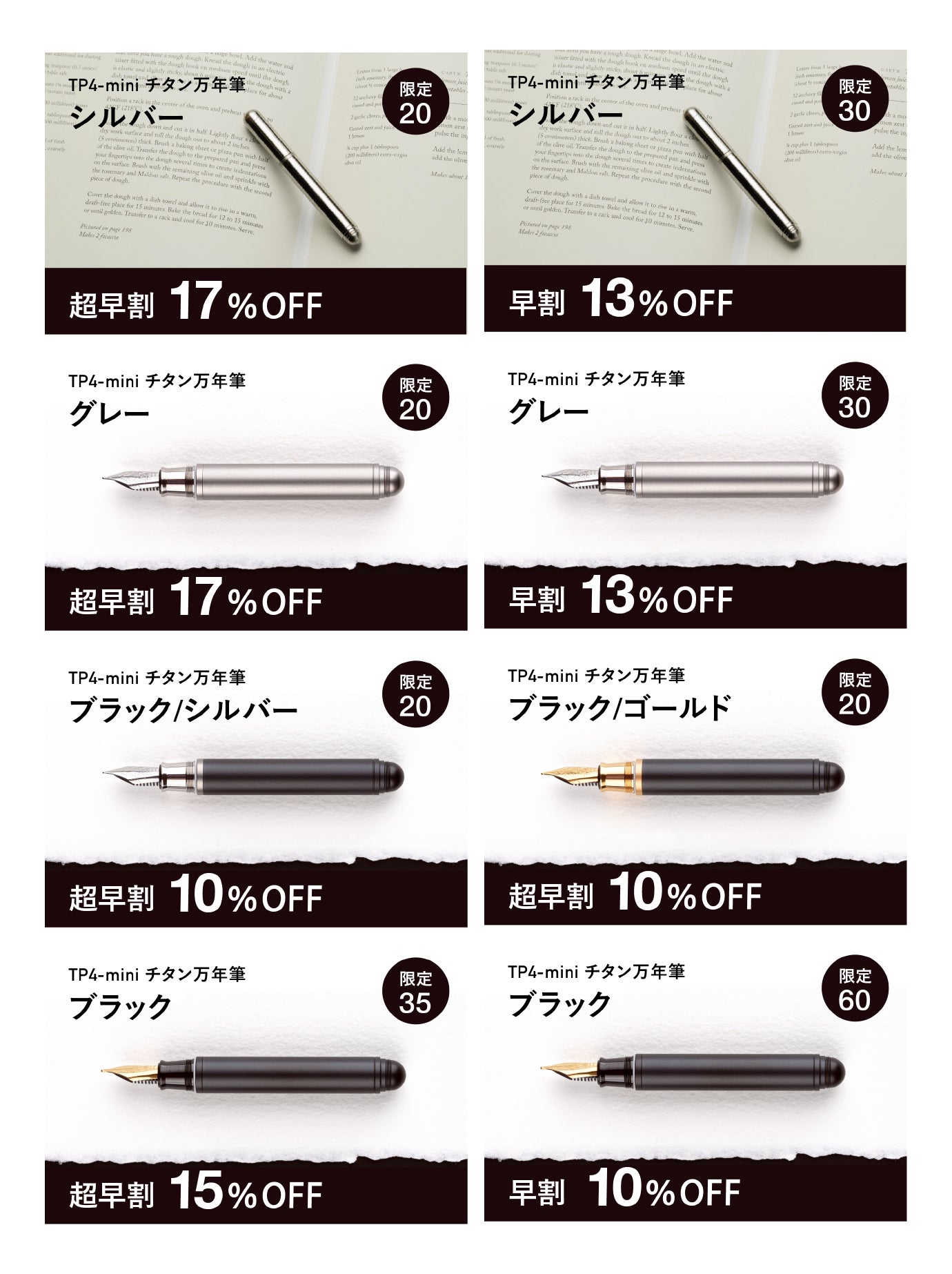 2025/06/17 19:00[TTi-FAN 2025年モデル 販売開始!]過去、たくさんの方に支援いただいたTimazeが手がけるチタン×シルクの高級扇子:TTi-FAN (718/918)に、2025年モデルが新登場。6月25日まで注文受付中です。販売ページは以下のリンクから遷移してみてください。TTi-FAN 718(小型)https://www.microfactory.jp/products/tti-fan-718TTi-FAN 918(大型)https://www.microfactory.jp/products/tti-fan-918[先行販売期間]6/16 (火曜)18:00 - 6/25 (木曜) 23:59PM発送については、梅雨明けが予想される7月中旬ごろを予定しています。なお、今回新登場のシルバー×シルバーモデルはご自身で扇面と骨組みを組み立てていただくDIYタイプ。一手間を加えることで、美しいチタン焼け加工を楽しむことも可能ですよ。チタンを焼き加工してみた - ブログ記事はこちらからhttps://www.microfactory.jp/blogs/journal/tti-fan-burn-25 もっと見るニブの交換手順と対応したインクについて