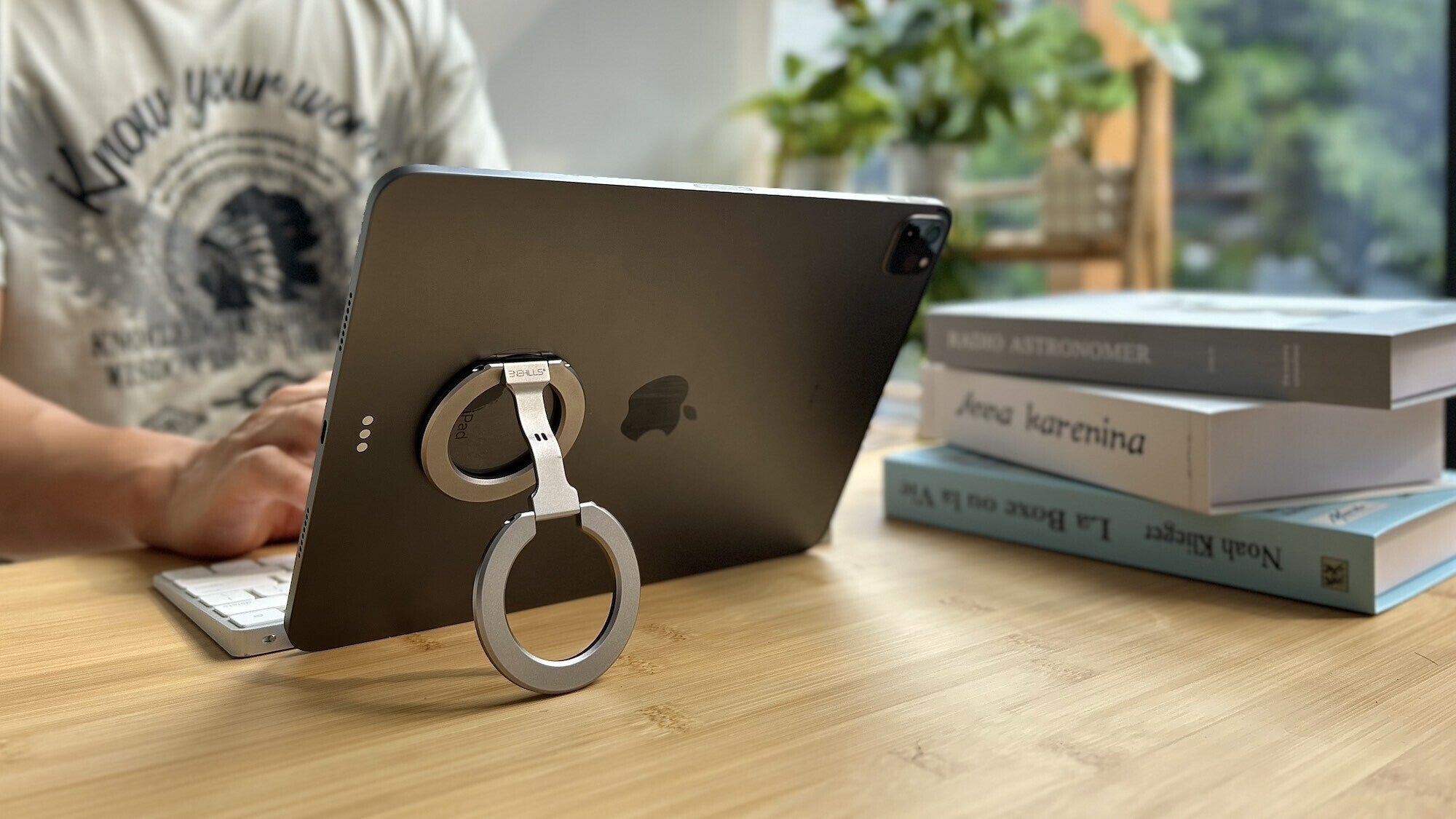 注:iPadは仕様上、MagSafe用磁石が内蔵されていないため、付属のメタルリングをタブレットもしくはタブレット保護ケースに貼り付けてご利用ください。