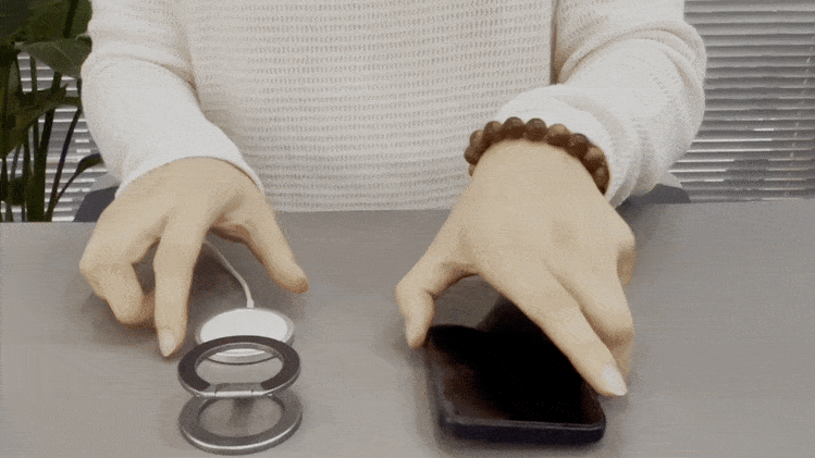 Dual Magic RingをMagSafe対応の充電器の裏側(メタルリングが貼られた面)に吸着させることで、充電しながらDual Magic Ringも使用できます!