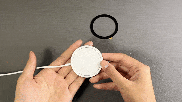 MagSafe対応の充電器の裏側に、リターンに付属のメタルリングを貼り付けてください。