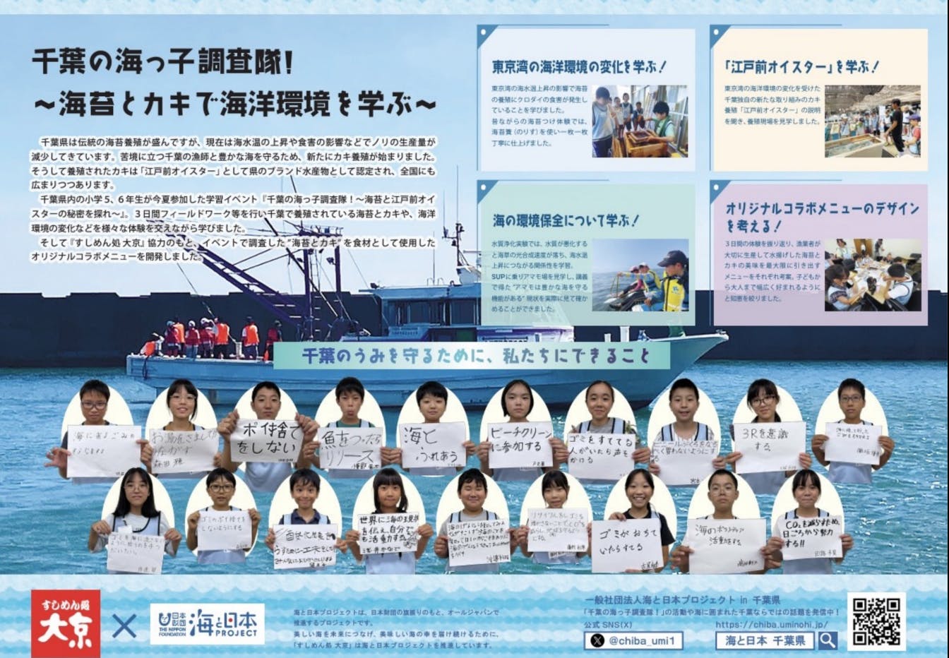 現在「すしめん処 大京」では、2024年夏、千葉テレビ様と一緒に企画させていただきました「地域の子どもたちが考えた牡蠣を使ったメニュー開発」などの取り組みを行っており、子どもたちが、食の大切さや美味しさに気づくきっかけを与え、食に関する知識向上にも繋がるような食育プロジェクトを推進しております。