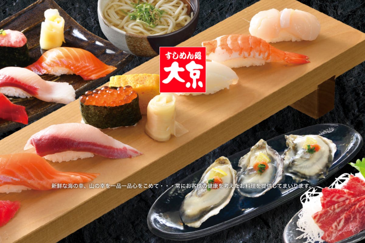 秋の旨いものフェア開催中です!皆様、こんにちは。すしめん処 大京です。大京では、2024年10月4日より「秋の旨いものフェア」を開催中です。大人気の旨くらべにぎりに、秋の味覚「舞茸天ぷら麺」を組み合わせるなど、秋にぴったりの料理を味わっていただくことができます。また、今年は「鴨メニュー」が充実しています。最高に美味しい鴨料理をご堪能ください!※ 秋の旨いものフェア詳細はこちら:https://www.dfs.co.jp/info/241001-1ネクストゴール 200万円の目標を目指してすしめん処大京では、家族揃っての食事の時間を少しでも増やし、子どもたちの食教育に繋がる取り組みをさらに進めるため、「ネクストゴール 200万円」を目指し、引き続きクラウドファンディングでの活動を進めて参ります。皆様、ぜひ応援の程、何卒宜しくお願いいたします!リターン一覧について① 限定倍返し お食事割引チケット(支援額×2倍の飲食割引券)② 限定食べ放題チケット(期間内であれば何回でも大京店内メニュー食べ放題。チケット有効期間内で、食べ放題が可能な期間を2ヶ月ご選択いただきご利用いただけます。食べ放題対象メニュー:https://www.dfs.co.jp/menu/tabehoudai 、食べ放題でご来店いただく大人1名につき小学生1名が無料となります。大人の人数以上の小学生は半額、幼児無料)③ 店内御礼広告札書き(店内広告札を大京店舗内に掲載)④ 試食会イベント参加チケット(大京の新メニュー試食会へご招待)⑤ 料理体験ワークショップ(大京の料理ワークショップへご招待)⑥ 御礼メッセージ(ご支援いただきました御礼メッセージをご連絡)⑦ 店内メッセージ掲載(ご支援者様のお名前を店内に掲示)※ クラウドファンディング期間:2024年9月18日(水)〜10月31日(木)※ 大京店舗一覧:https://www.dfs.co.jp/store-info