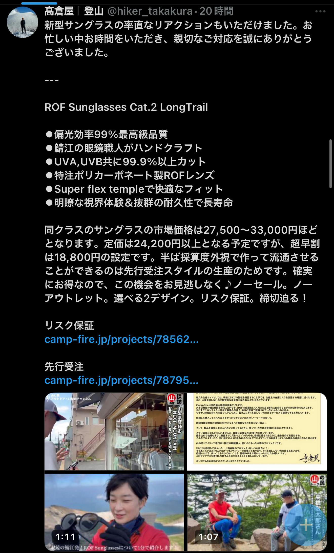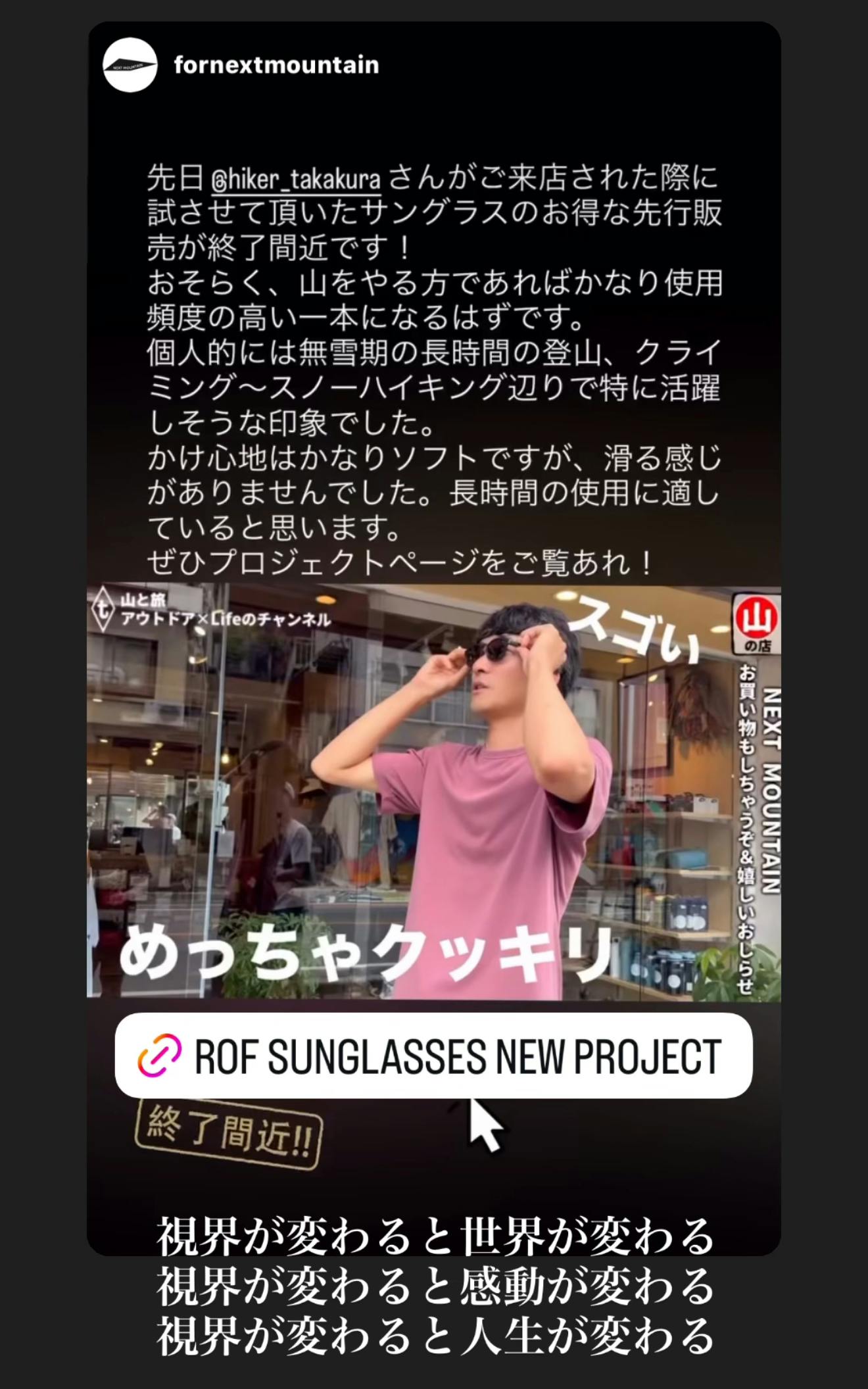 私は山と生活を楽しませていただきながら『ROF Sunglasses Cat.2』の発信を継続しております。