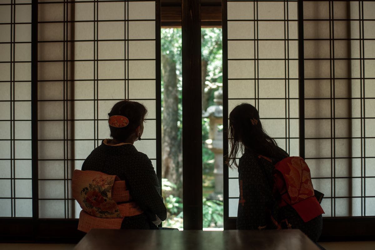 お二人の髪の毛やイヤリングの感じが艶やかで、お庭の灯篭のチラリズムもワクワク感があって、お気に入りの一枚です。