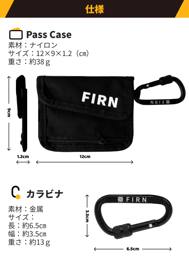 FIRNのカラビナはロックタイプになっており、勝手に物が落ちない設計です。