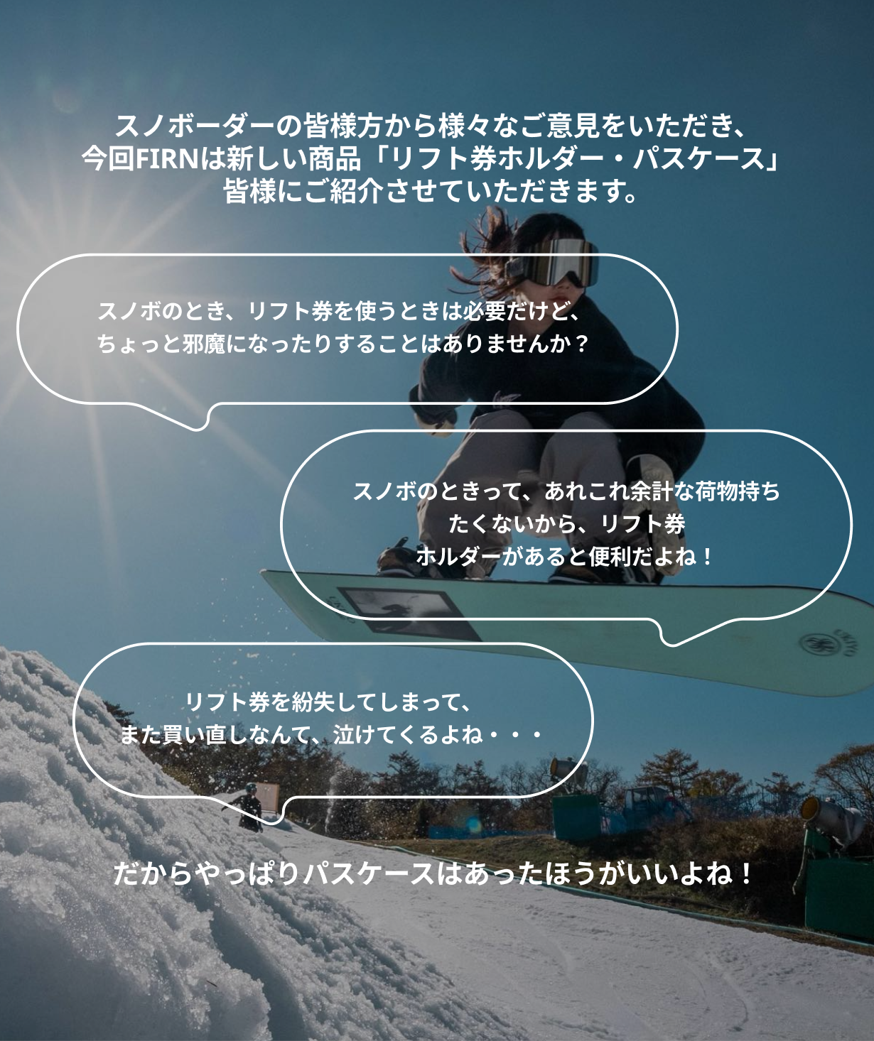 今回、スノーボーダーの皆様方から様々なご意見をいただき、冷静に設計を行い、ついに第二弾「手ぶらで軽快&紛失防止!!リフト券ホルダー・パスケース」が誕生!さらに進化した機能性と使いやすさで、皆様の期待にお応えします。