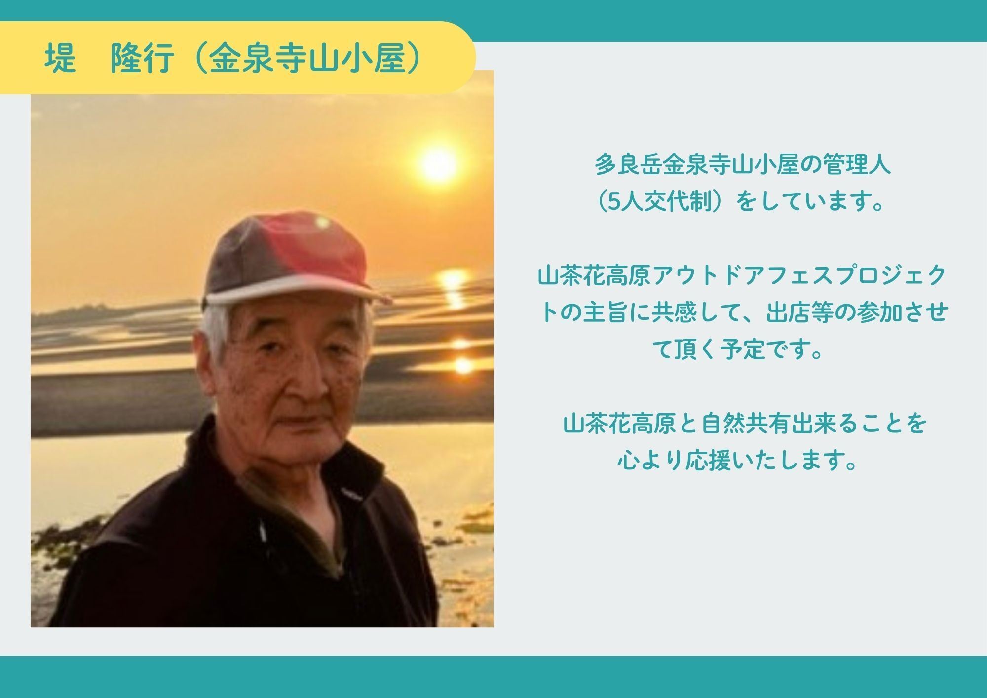 バルーンの仕事をしながら登山を趣味として楽しんでいます。 古より信仰の山としても知られる多良岳を中心とした多良山系をこのイベントでより知ってもらうことで、楽しく親しみやすい安全なアウトドア活動に繋がればと思います。