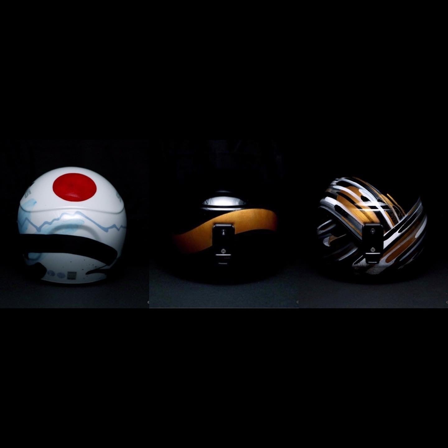 左、渡部善斗、真ん中、右、渡部暁斗ヘルメット