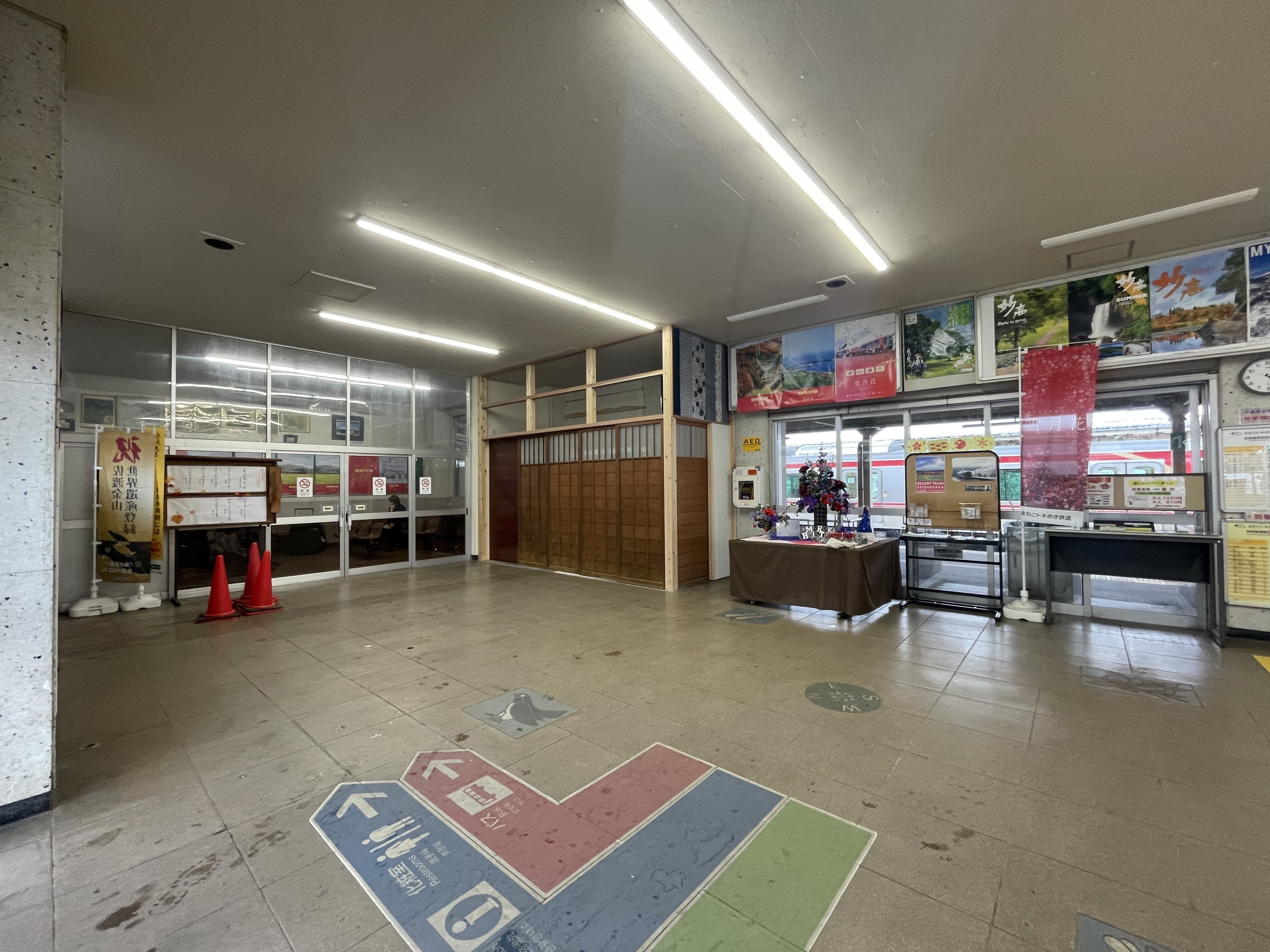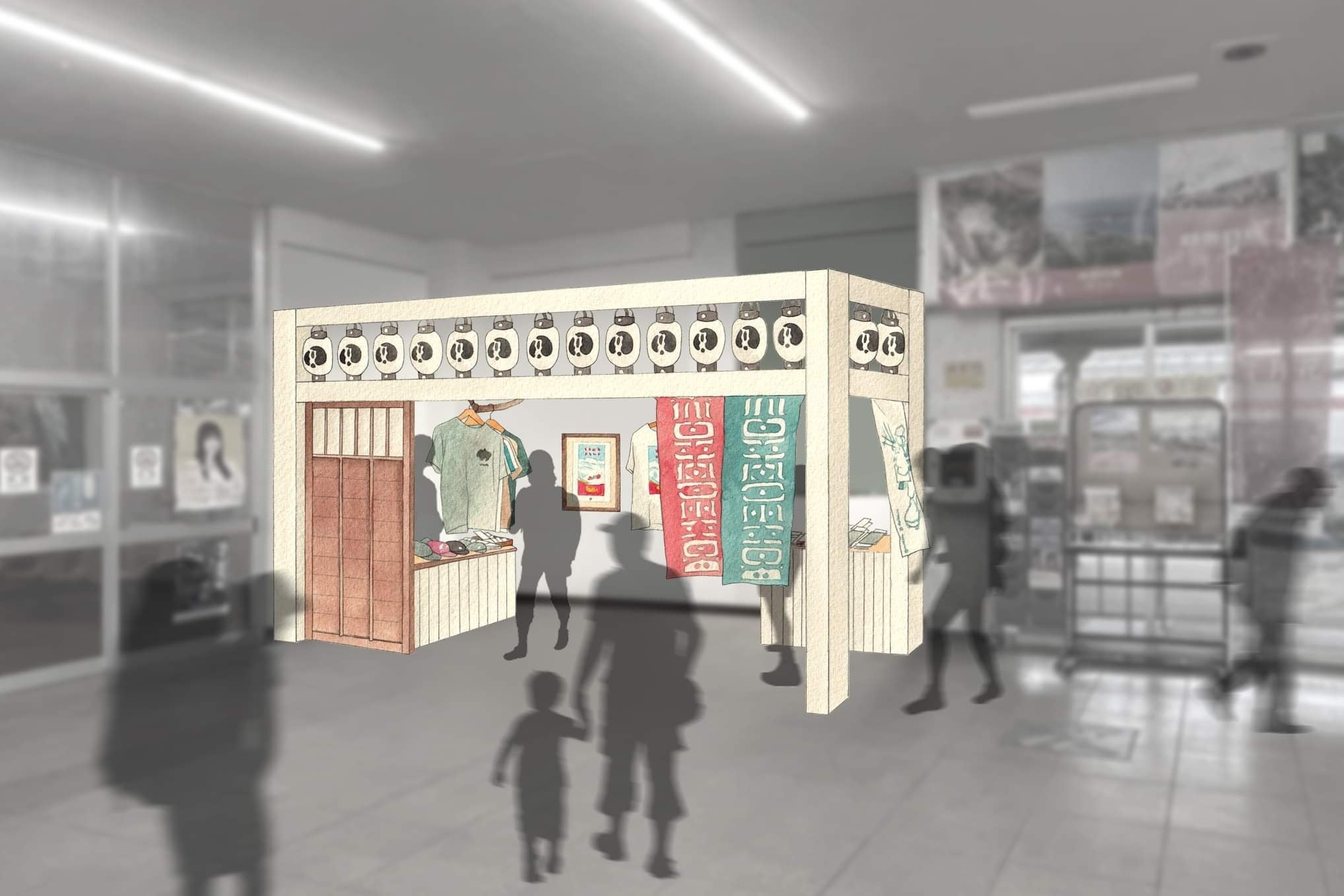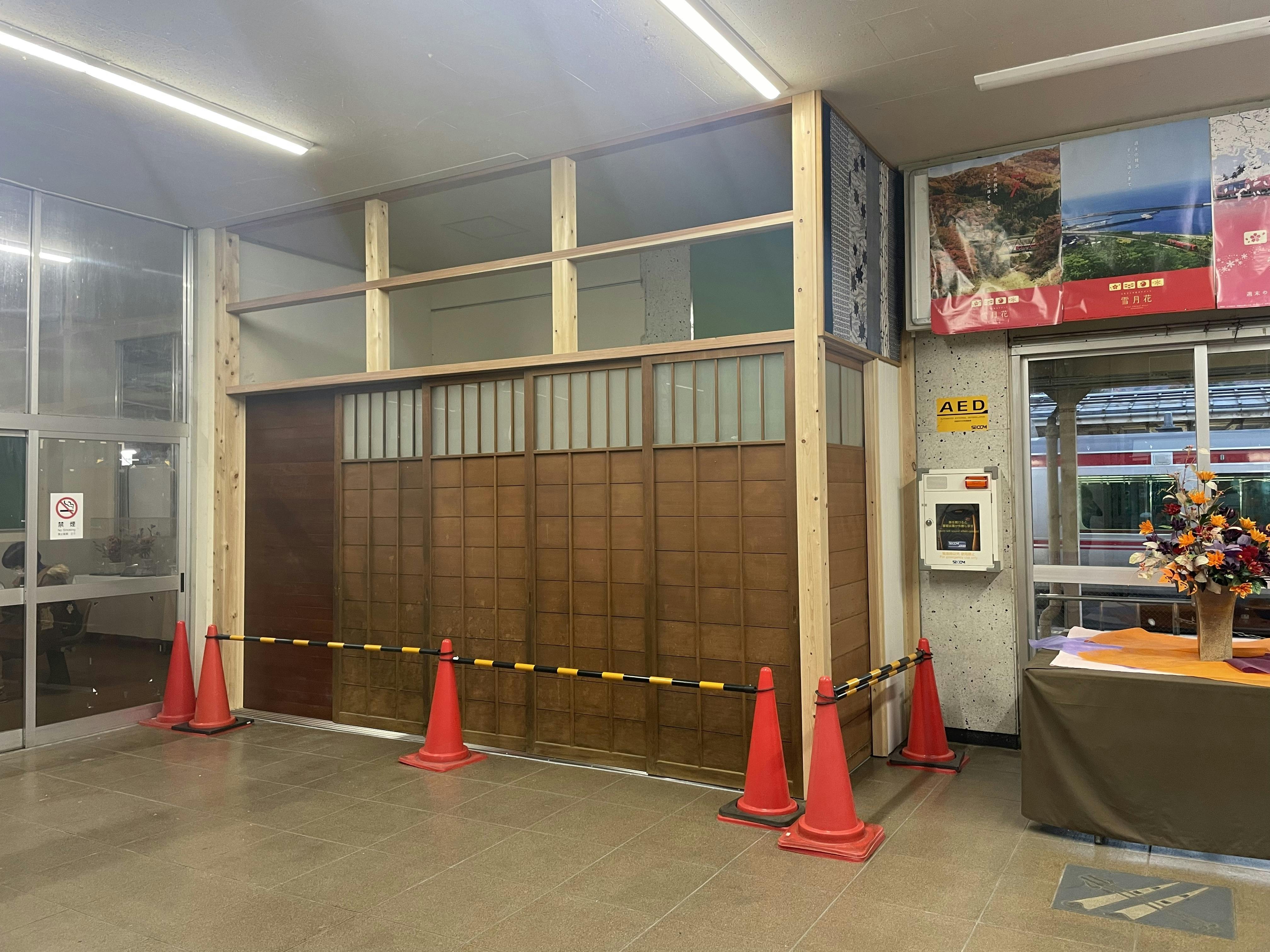 妙高高原駅内(元売店、皆の青春)があった場所に盆踊りのやぐらのような店舗を建て、お祭りのような雰囲気で観光客の皆さんを送迎できる場所。