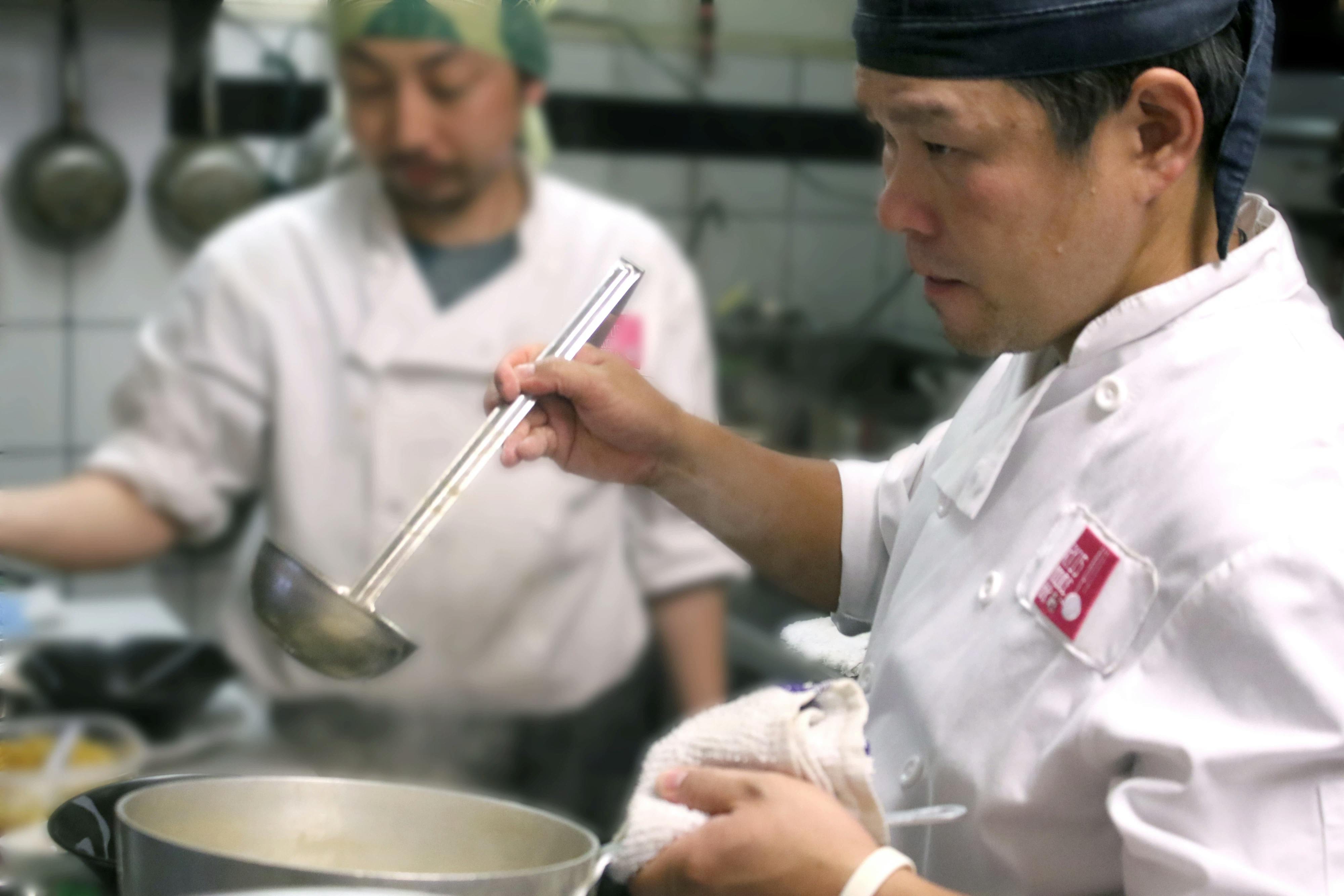 信頼のおける元同僚からの相談を受け、自身も日本の法人へ出資をすることにし、レシピや取引先の情報を共有しました。そして実際のスープの炊き方を元同僚に伝授してカナダへ帰国しました。