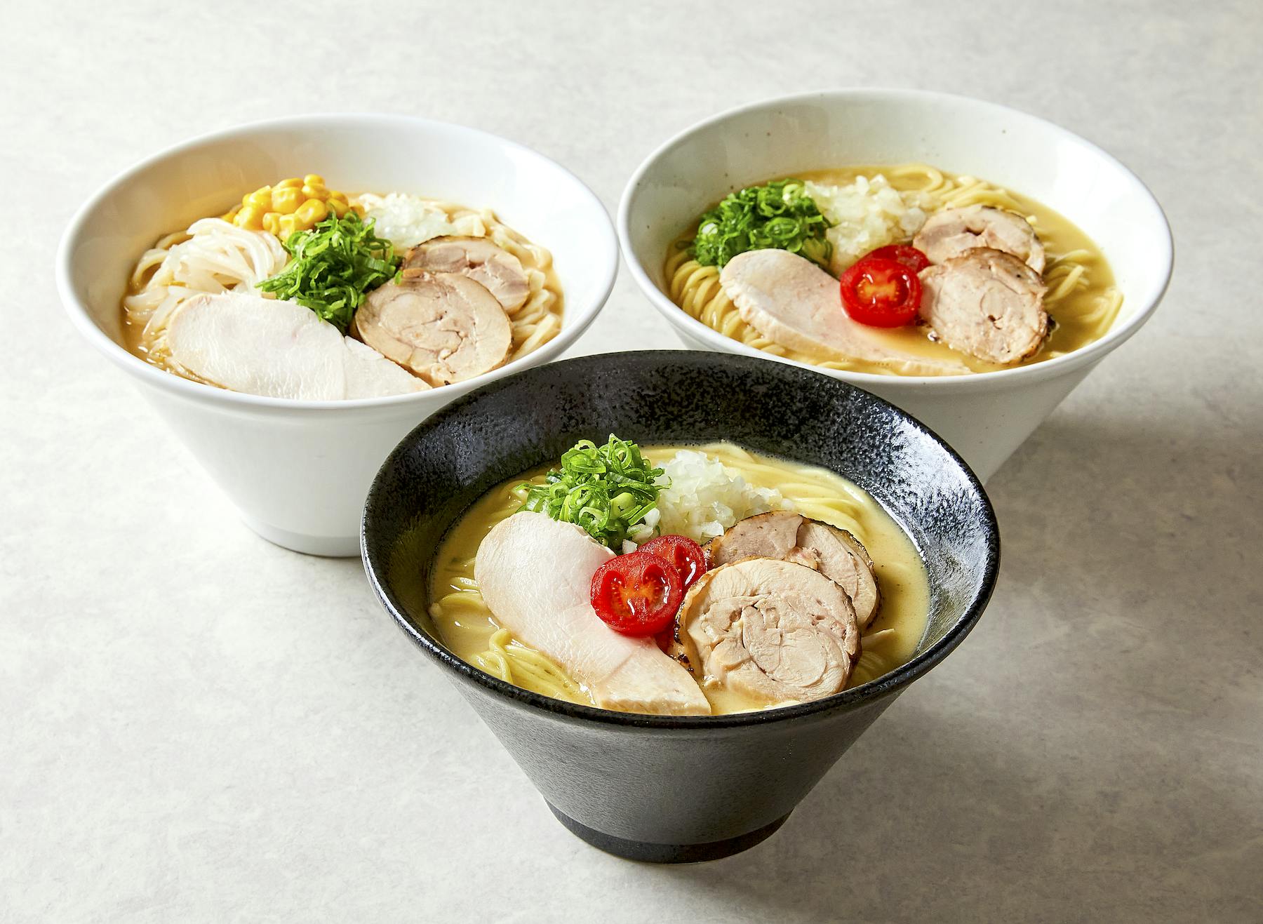 路面店として日本初出店するにあたり、「Tokyo Craft」と銘打ち、カナダオリジナルと比較して、塩、醤油、味噌それぞれのメニューは、野菜と鶏の旨みを強くしたスープにしたことで、より輪郭のハッキリしたラーメンに仕上げました。