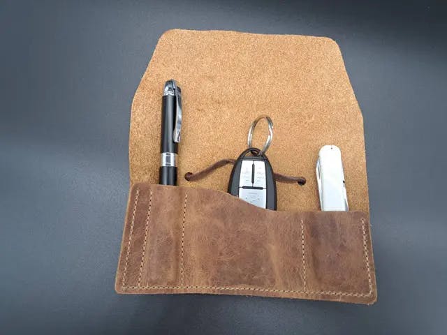 牛革のオリジナルレザーポーチを作りました。