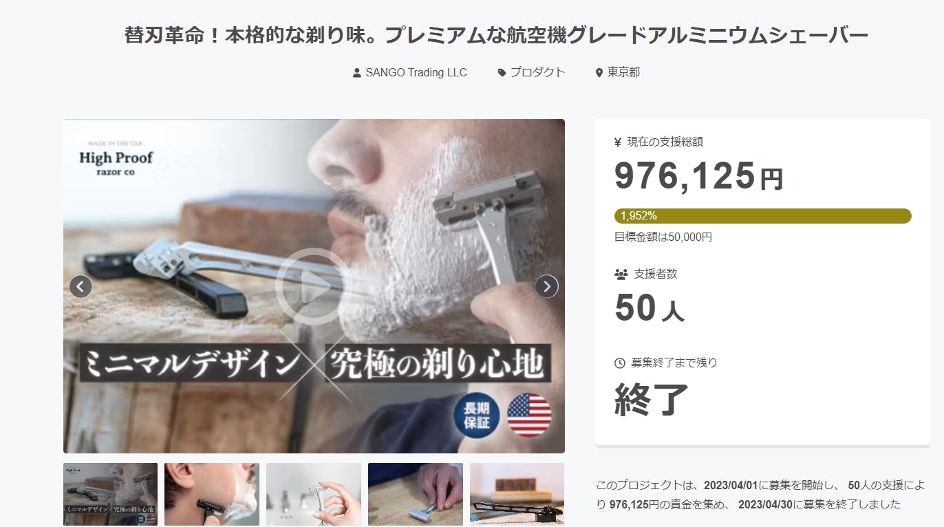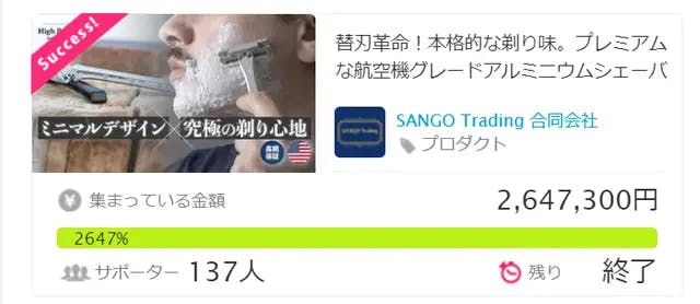 第1弾のシェーバーは米国クラファンサイト「Kickstarter」でわずか15日のプロジェクトにも関わらず、286人、$27,499の支援を達成した実績があります!