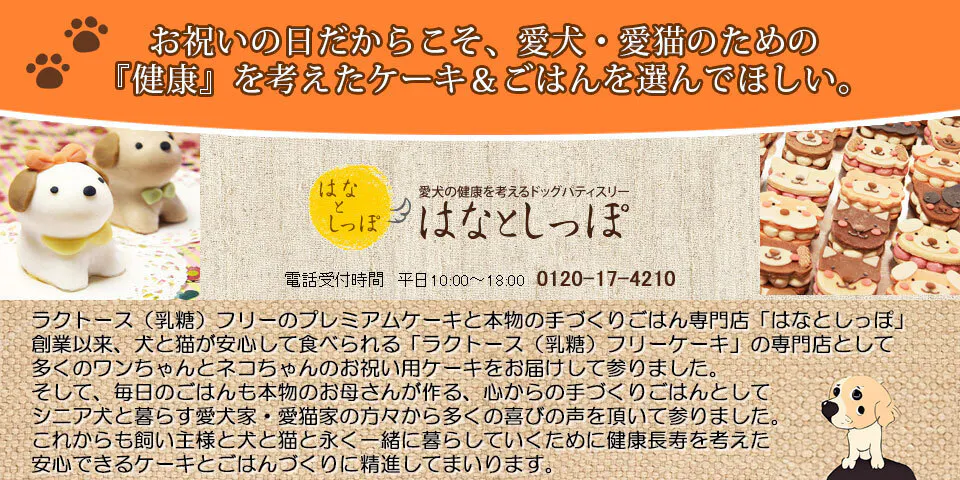 2011年に開業しました犬・猫用ケーキとごはんの専門店「はなとしっぽ」では、自然食材100%の安心な犬猫用ケーキやごはん等の愛犬・愛猫用のオーガニック食品を豊富に取り扱っております。