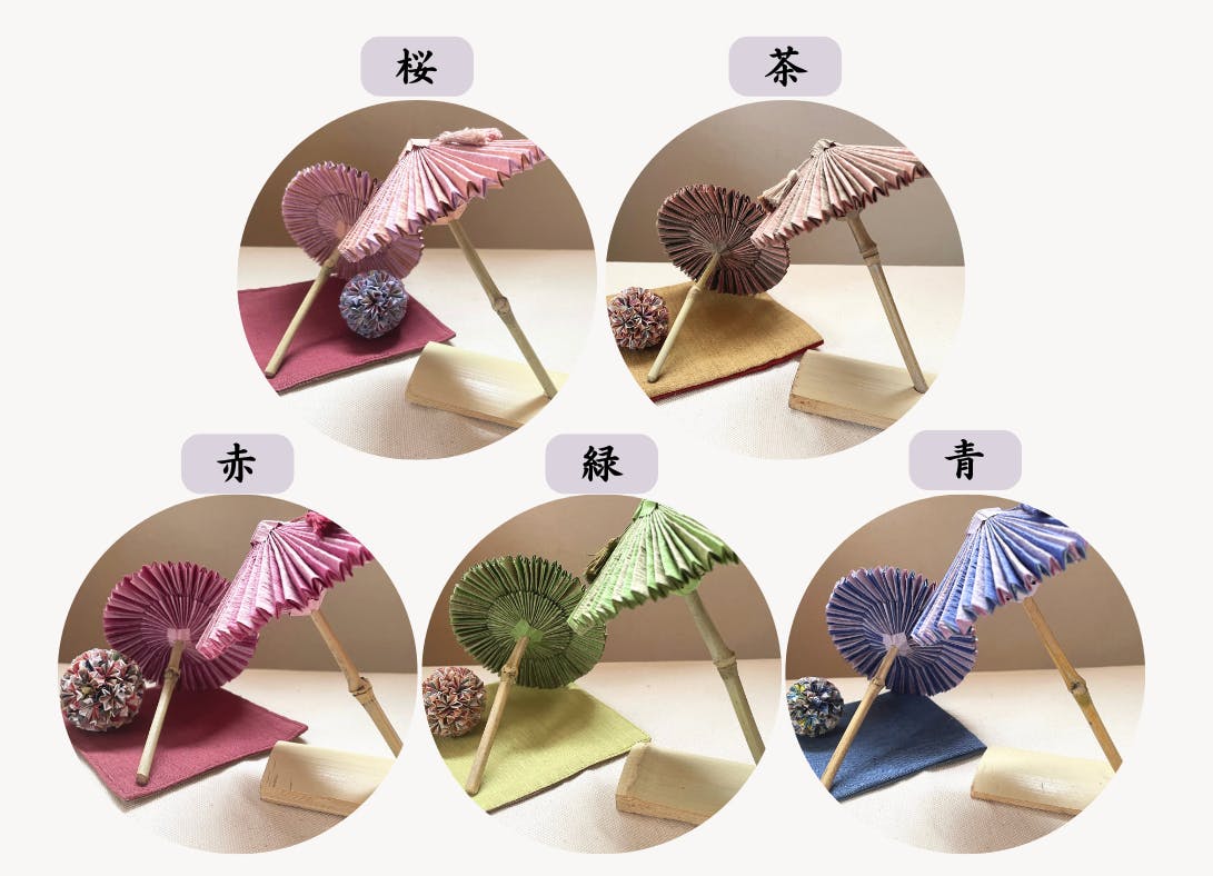 ものづくりや日本の和文化に興味があり、趣味から始まった置物の和傘作りでしたが、型の開発、形や配色、糸じめ作業と段階ごとに改良を重ね満足いく形となり、今現在に至ります。