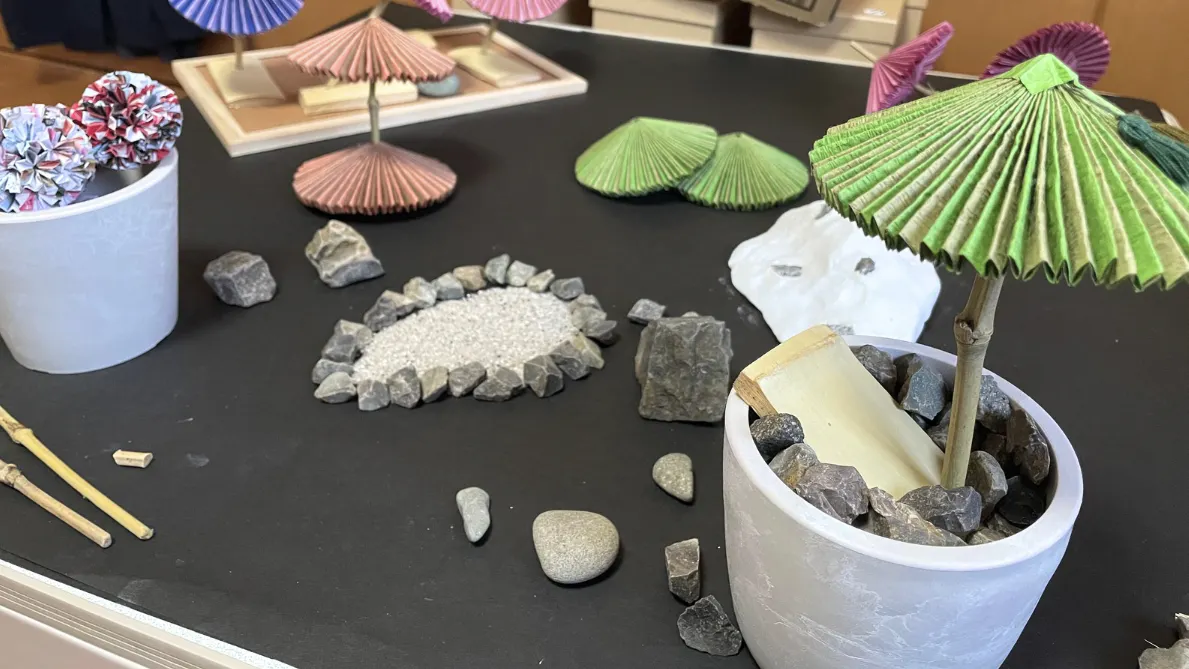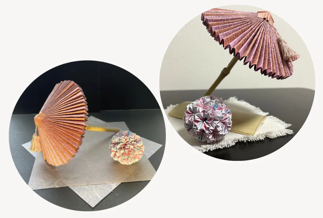 また、和傘を利用した美術制作も行っています。