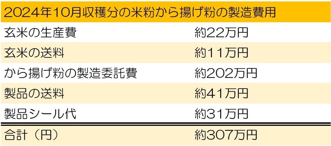 米粉から揚げ粉にすることで、玄米収益単価は卸売の5倍以上に上がり、少しずつではありますが、収益性の向上が見えてきました。
