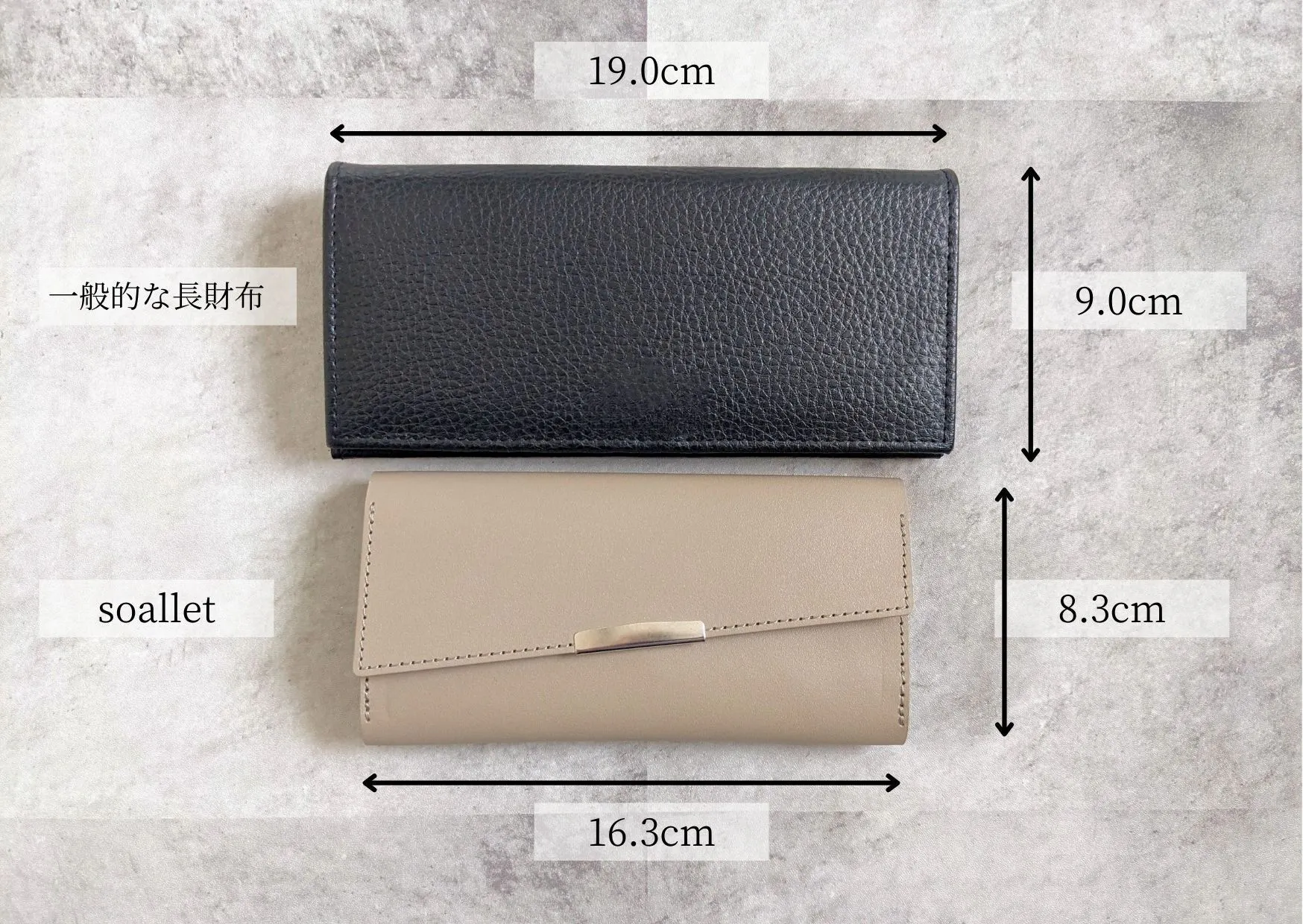 一般的な長財布と比べるとこれだけ大きさに違いがあります。