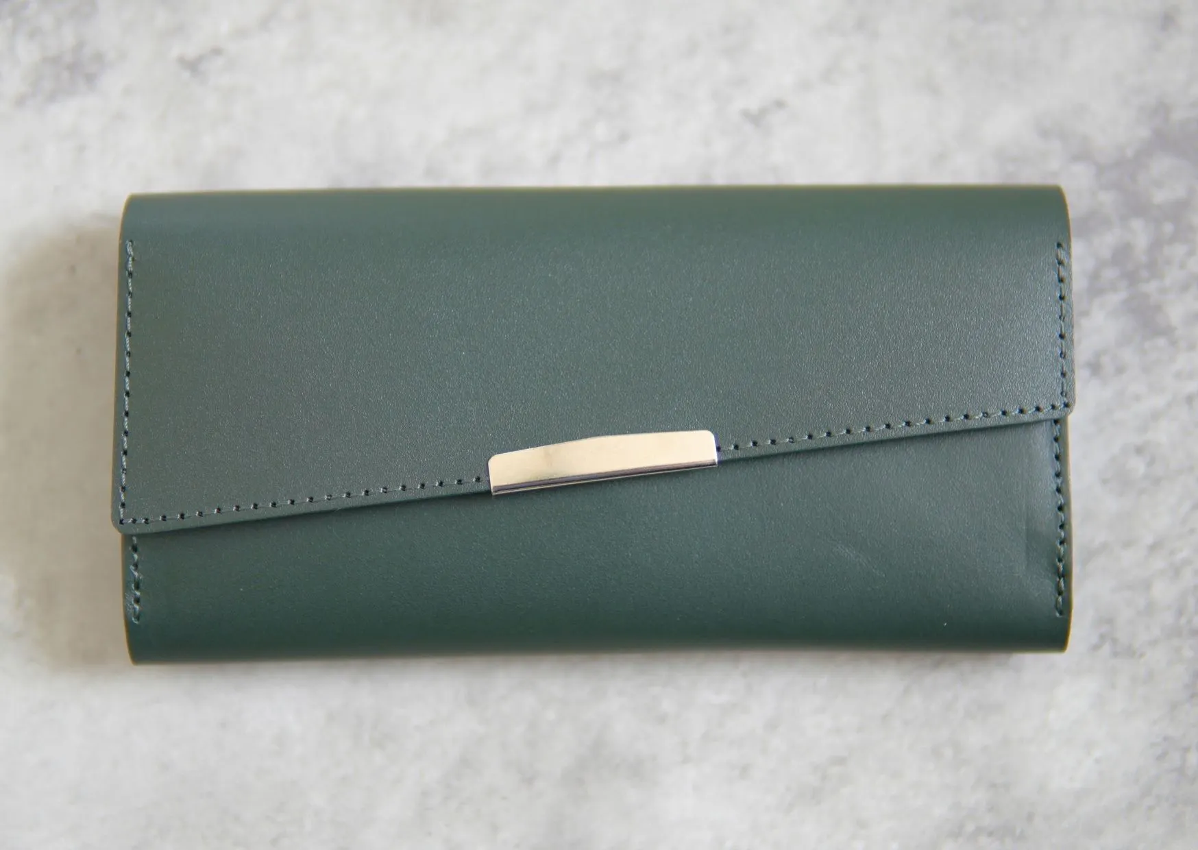 この右肩上がりのフラップのデザインは、右利きの方が財布を開くときに親指をかけやすい形状なので非常に開けやすくなります。