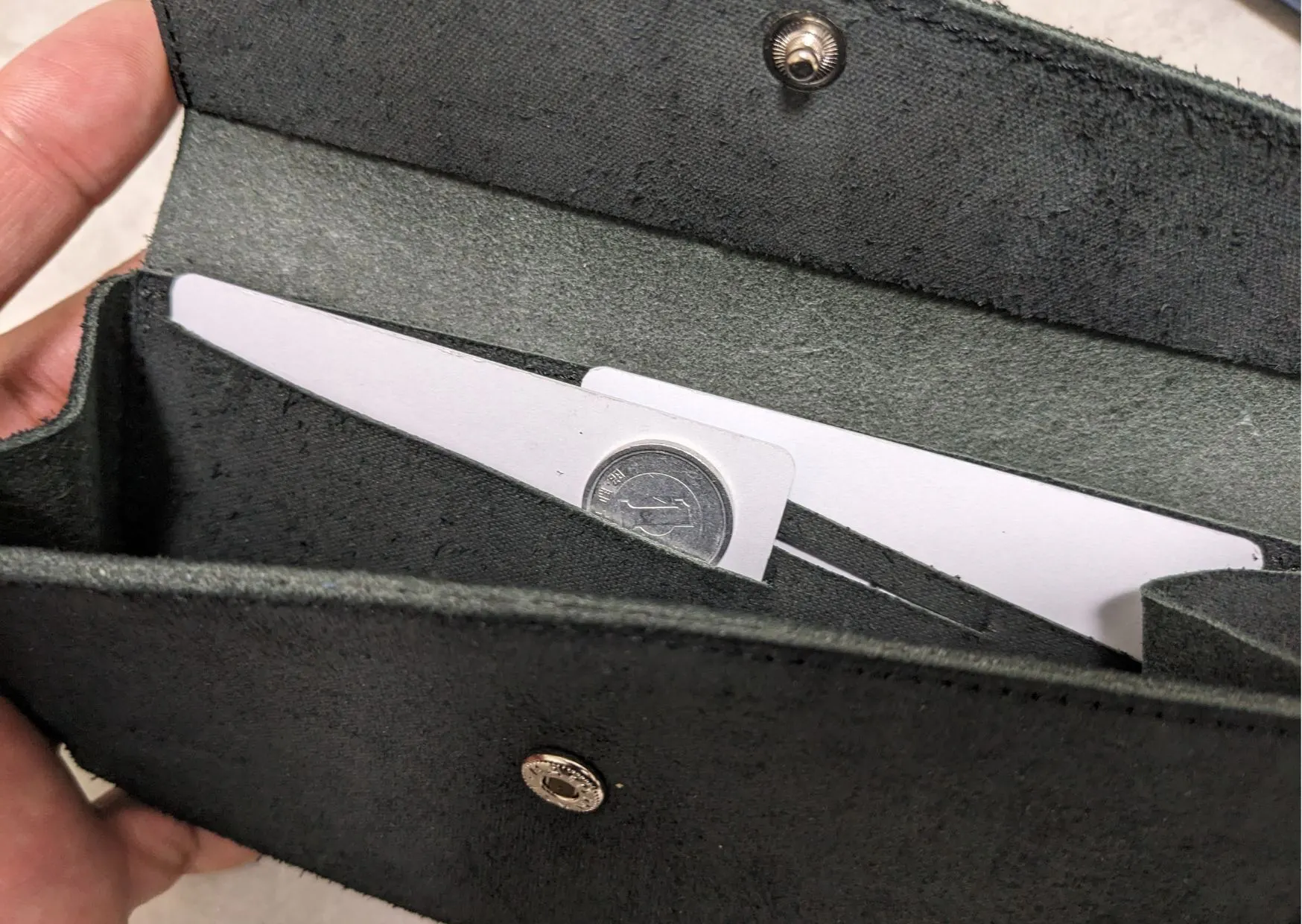 ・新品時は革が硬いためカードの出し入れは少しきつめです。