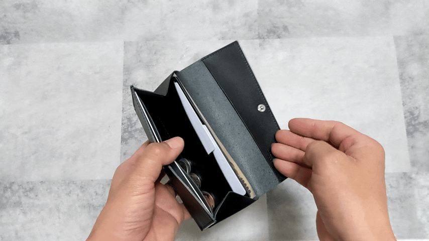 さらに小さな財布にありがちな「レシートはどこに入れたらいいんですか問題」や「個人と家計の仕分けは出来ないんですか問題」という収納スペースの課題にも取り組みました。