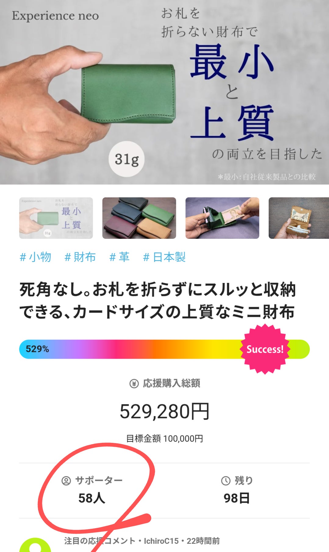 皆さまの温かいご支援のおかげで、Makuakeで公開中の Experience neo が支援総額100万円を突破いたしました!心より感謝申し上げます。ここまで来られたのは、ひとえに応援してくださった皆さまのお力添えがあってこそです。「キャッシュレス時代に本当にフィットする財布を届けたい」そんな想いから生まれた Experience neo が、これほど多くの方に共感いただけていることに大きな励みを感じております。まだプロジェクトは続いております。ぜひ引き続きチェックしていただき、周りの方にもシェアしていただければ嬉しいです!→ プロジェクトページはこちら