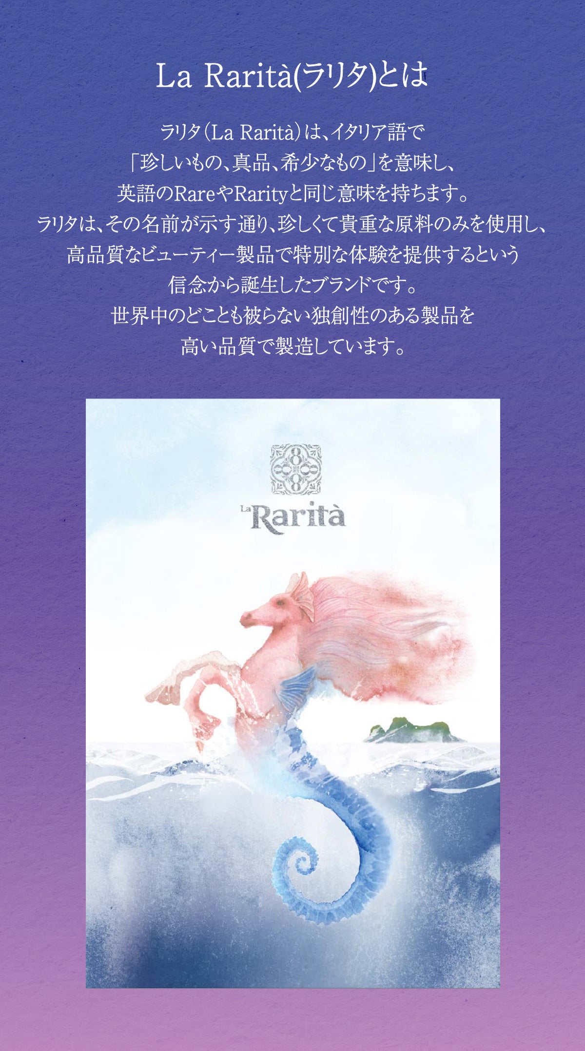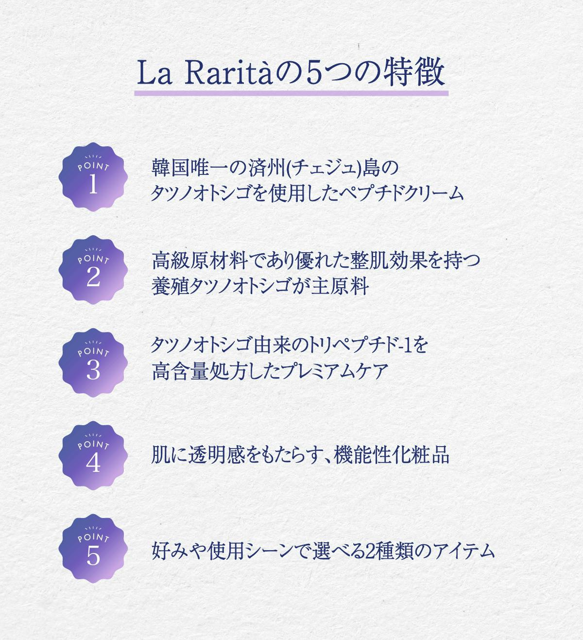 済州島で養殖されたタツノオトシゴからトリペプチド-1を抽出し、肌のハリおよび乾燥予防のための現代的な美容原料としてLa Raritàは開発されました。