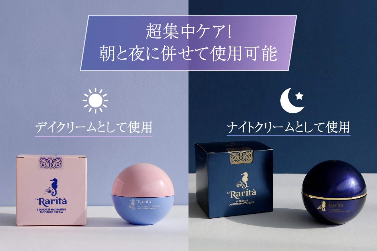 保湿とバリア機能をサポートしてくれる「シーホース ハイドレーティング モイスチャー クリーム」をデイクリーム、年齢肌の「シーホース アンチオキシダントクリーム」をナイトクリームとして、お肌の悩みに合わせて選んで使用することができます。