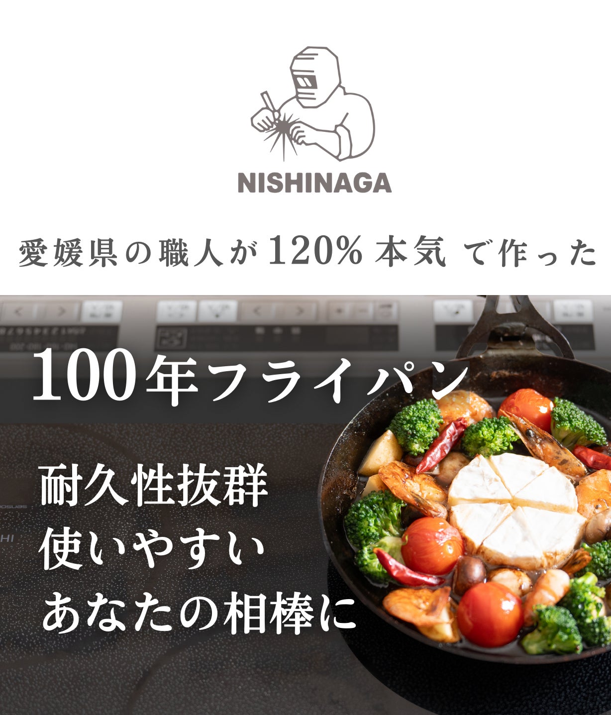 今回ご紹介するのは、愛媛県の町工場西永工業がデザインした「100年フライパン」です。このフライパンは、日々のお料理の時間をより楽しめる、相棒のようなフライパンを目指して作られました。毎日使ってもずっと使えて、育っていく、使いやすさと丈夫さを兼ね備えたシンプルなデザインに仕上げています。