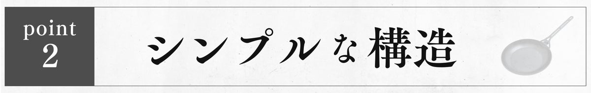 また、本体と「点」で接触する構造のため、取っ手まで熱が伝わりにくい(取っ手をくり抜いているのも熱が伝わりにくくするためです)設計となっています。また、持ち手の長さはフライパンを振らなくてもテコの原理で火加減を調整できるよう、少し長めに作られています。