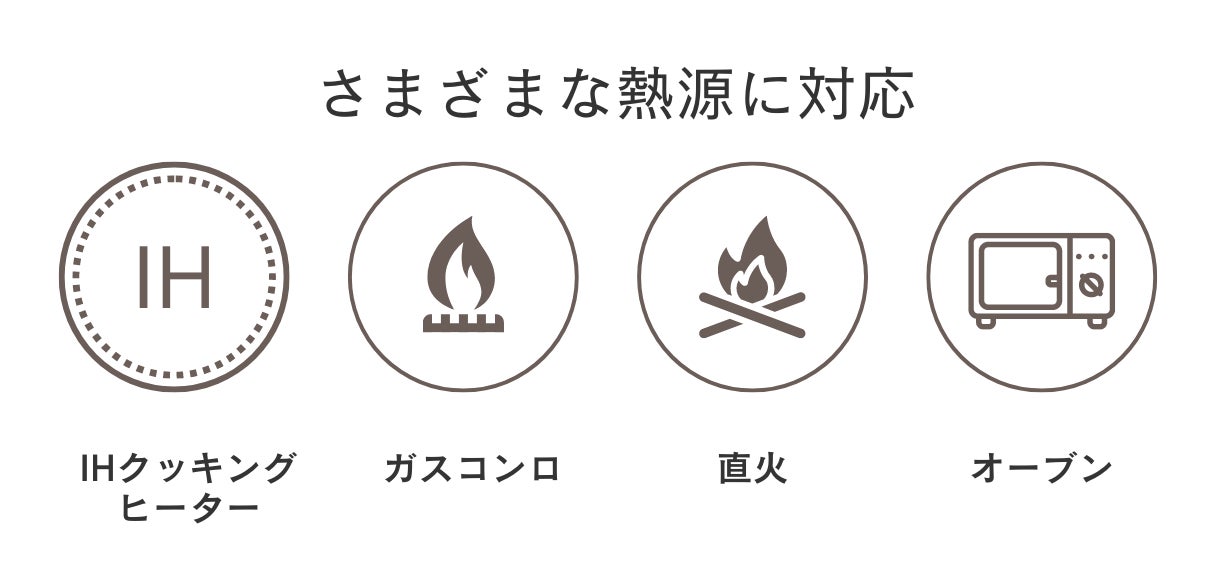 ガスコンロなど高火力な熱源でも楽々使えます。