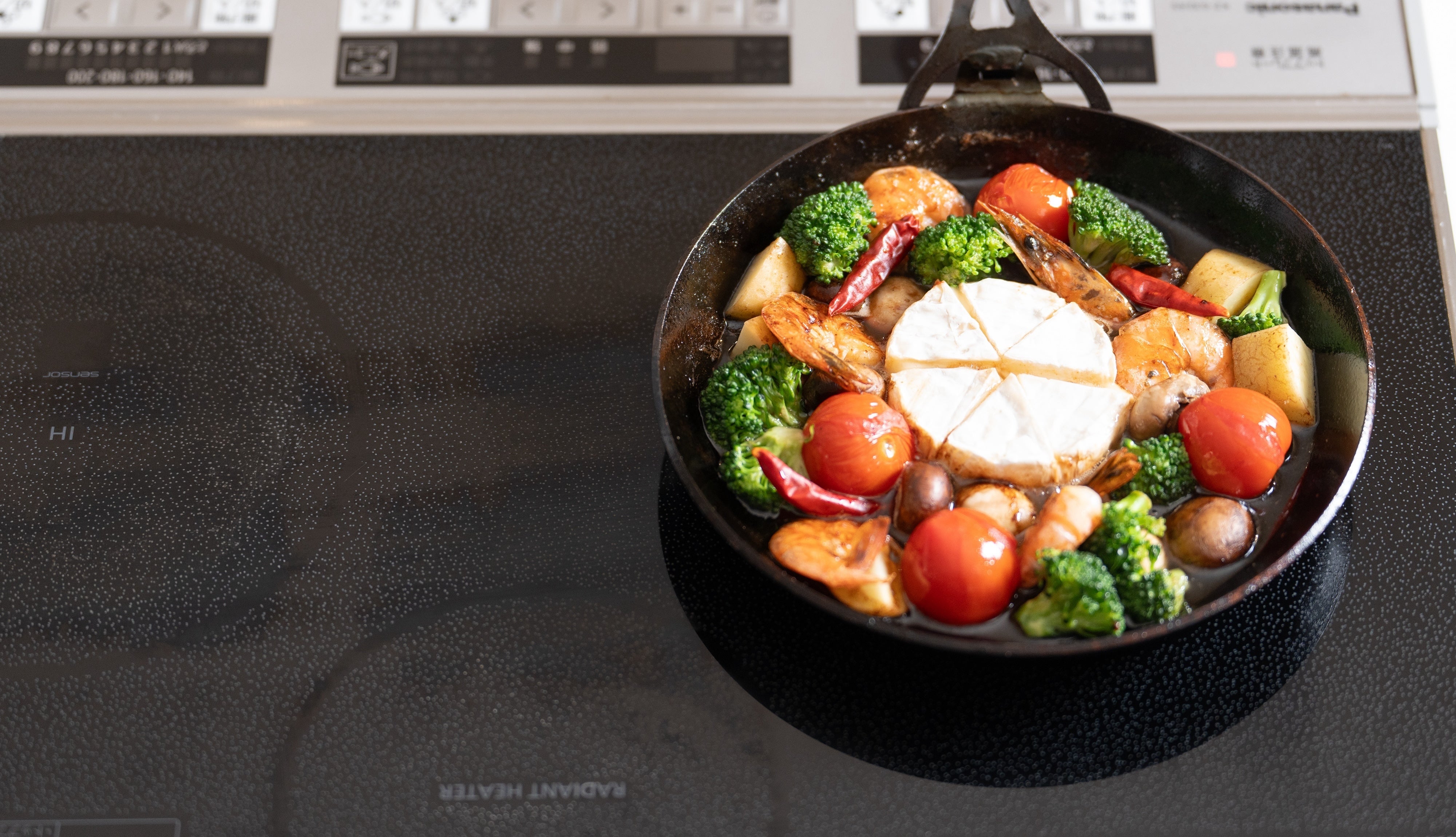 極厚の鉄板は熱で変形しにくいため、IHでも長く使えます。