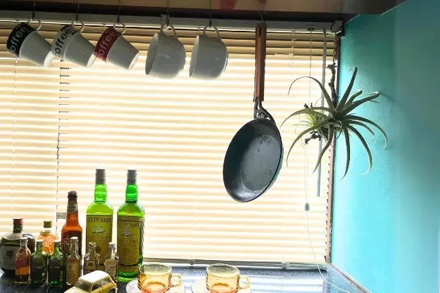 取っ手がフライパンをがっちりホールしているので取り付けたまま吊り下げることができます。