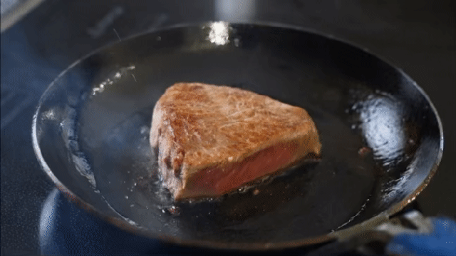 ⚫︎食材を入れたときに温度が下がりにくく、分厚いステーキも均一に焼き色を付けることができます。